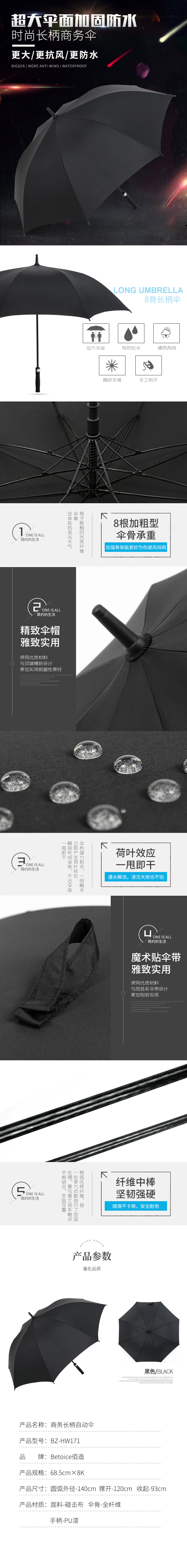 商品名称:Betoice/佰造商务长柄自动伞BZ-HW171