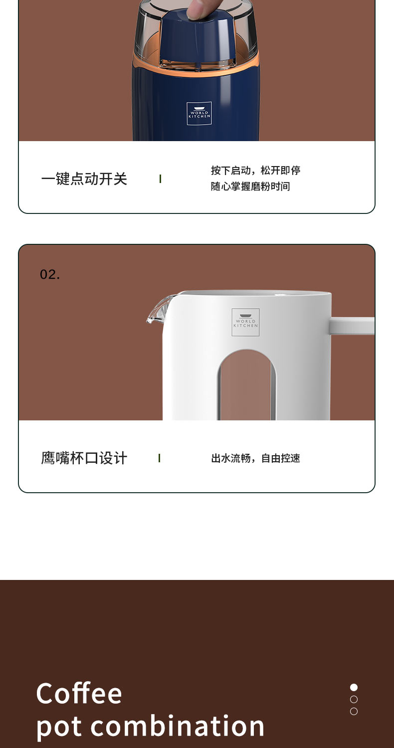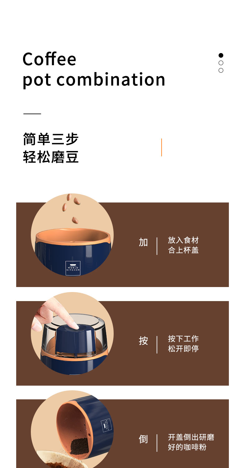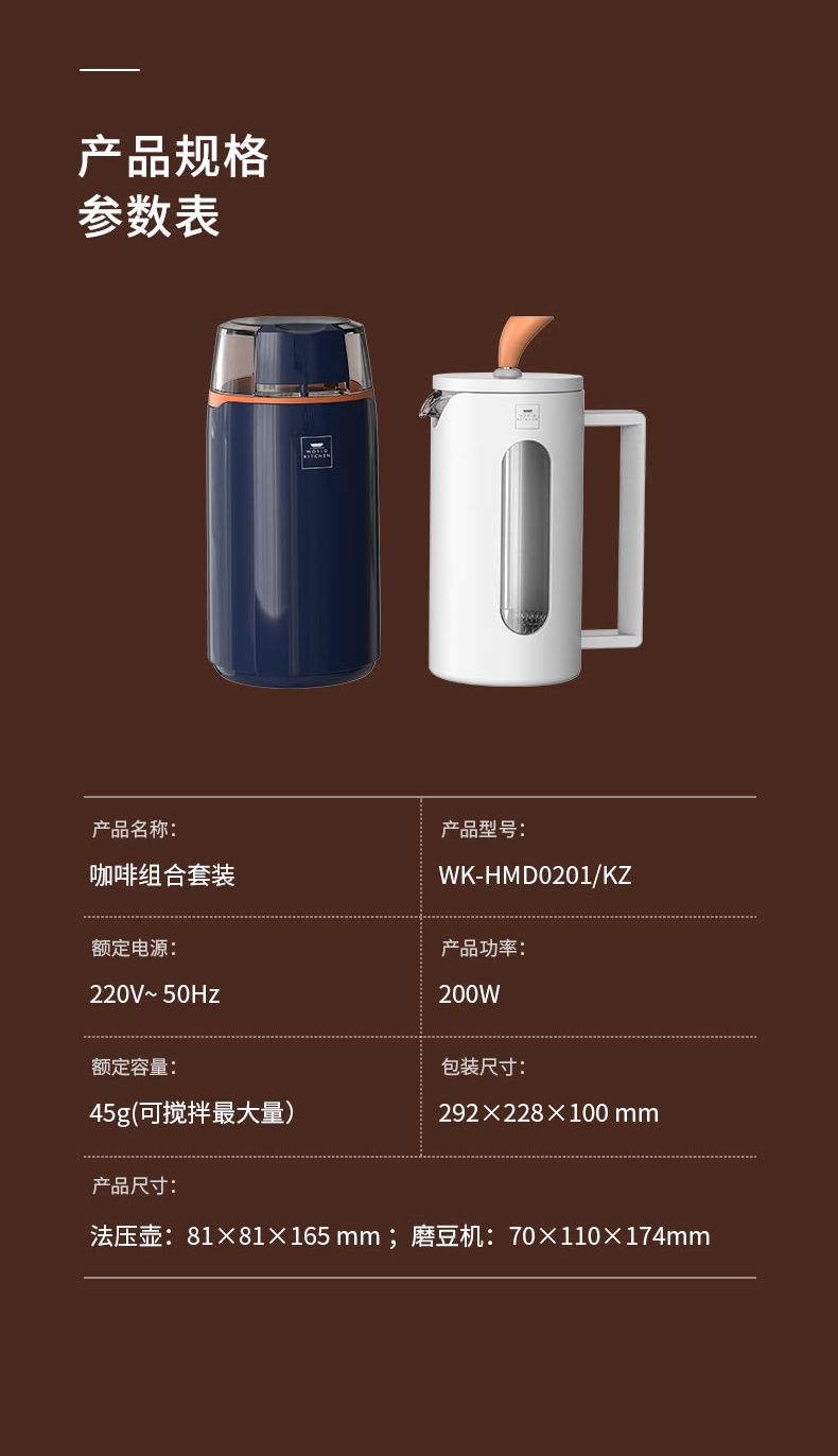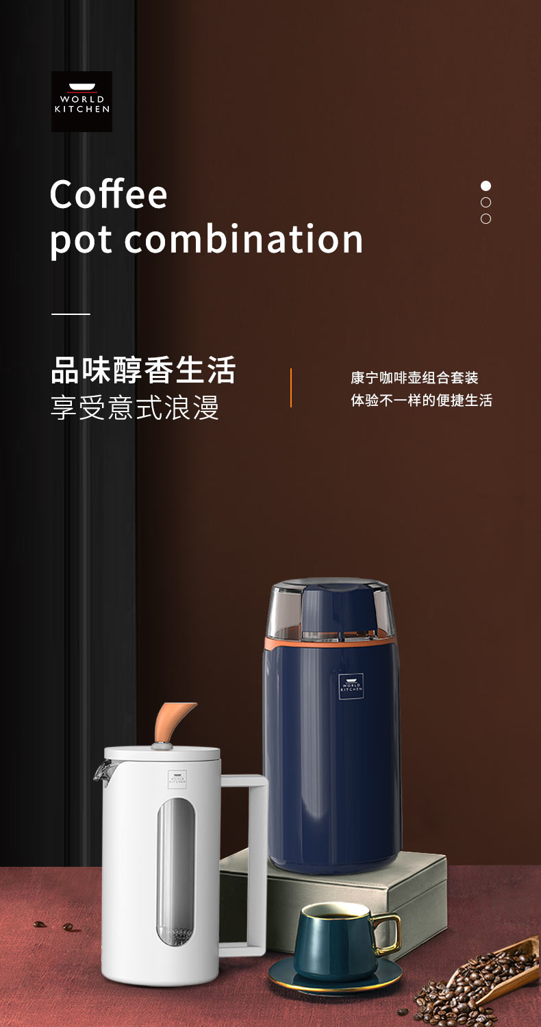 商品名称:WORLDKITCHEN/康宁咖啡壶磨豆机套装WK-HMD0201/KZ