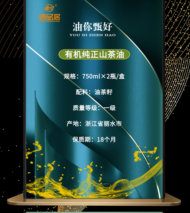 商品名称:谛品居有机纯正山茶油礼盒1.5L