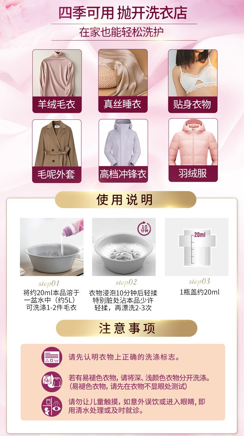 商品名称:白猫蚕丝蛋白精华羊毛丝绸洗涤剂(木质玫瑰香型)570g