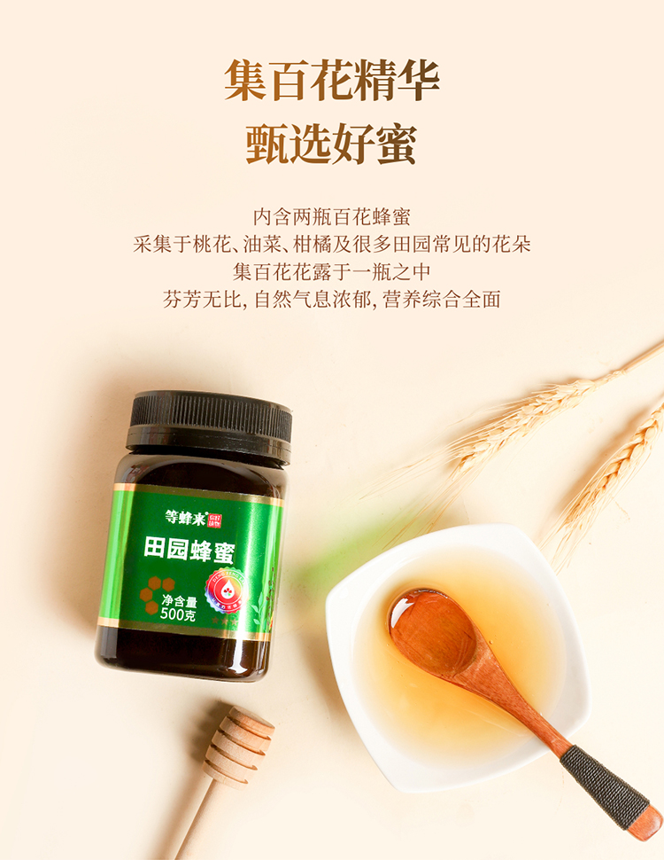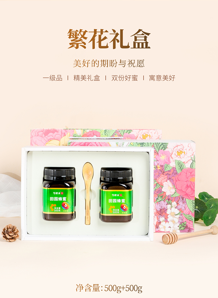 商品名称:等蜂来田园蜂蜜繁花礼盒500g*2瓶