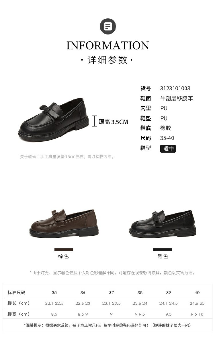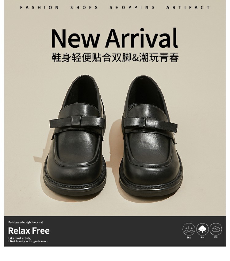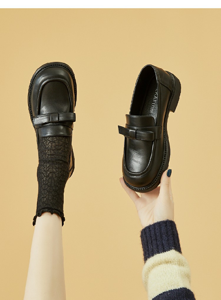商品名称:【舒适厚底】春季复古乐福鞋女英伦风小皮鞋通勤鞋粗跟女士单鞋 223194