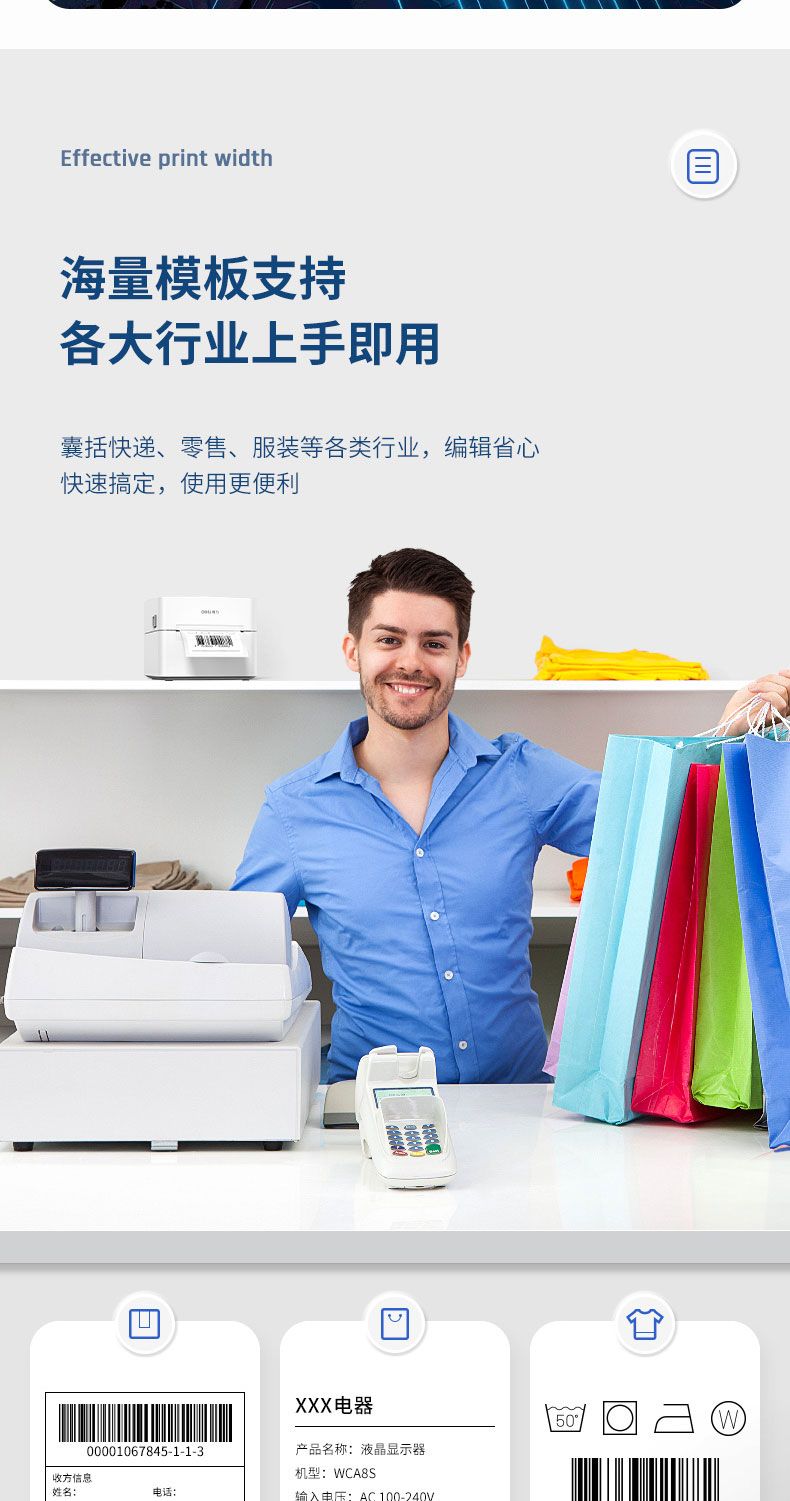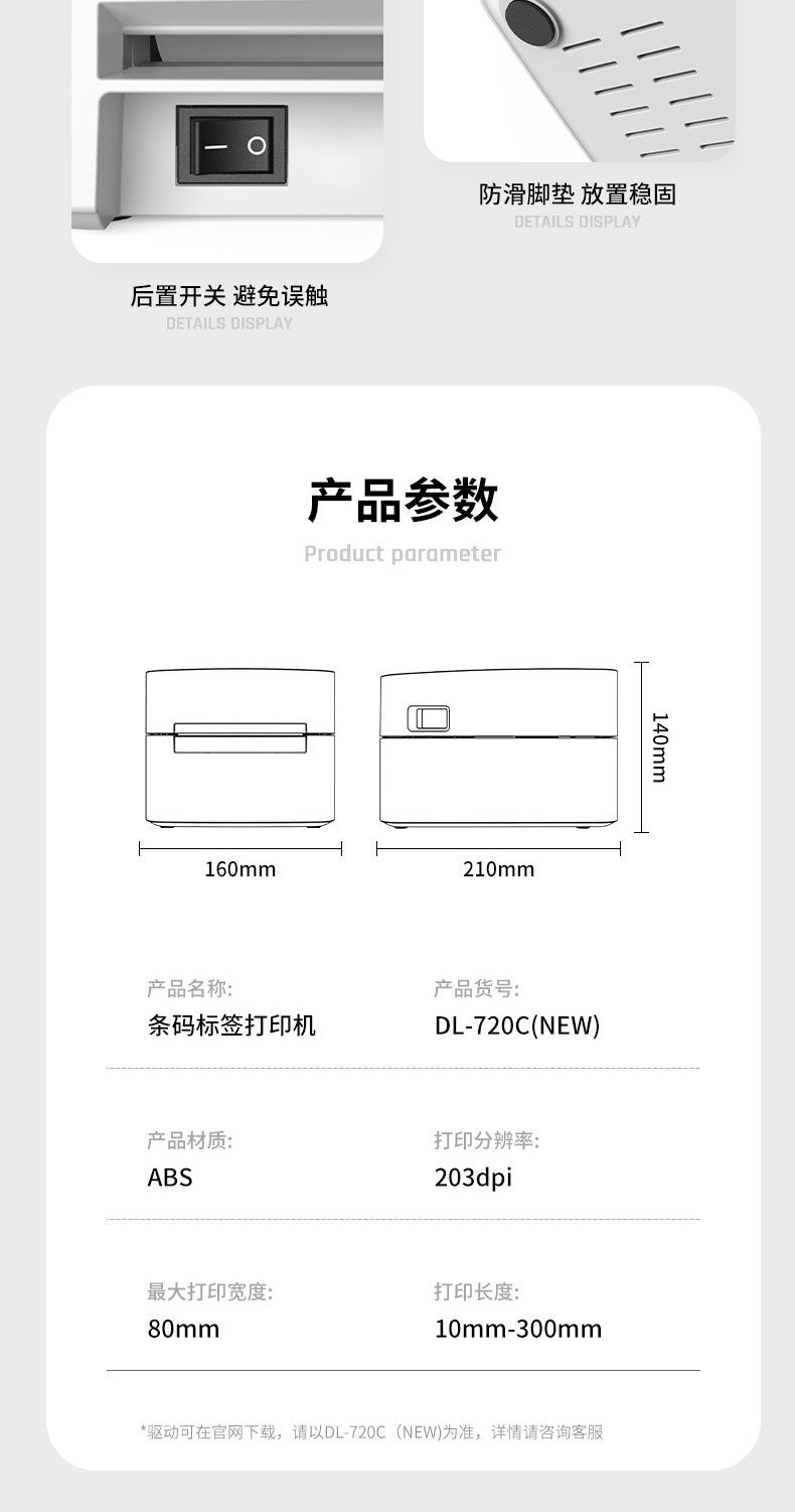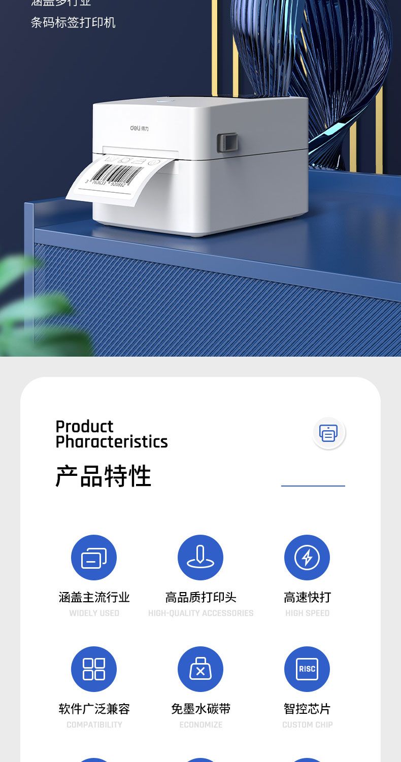 商品名称:得力 DL-720C(NEW)条码标签打印机(白)*1台