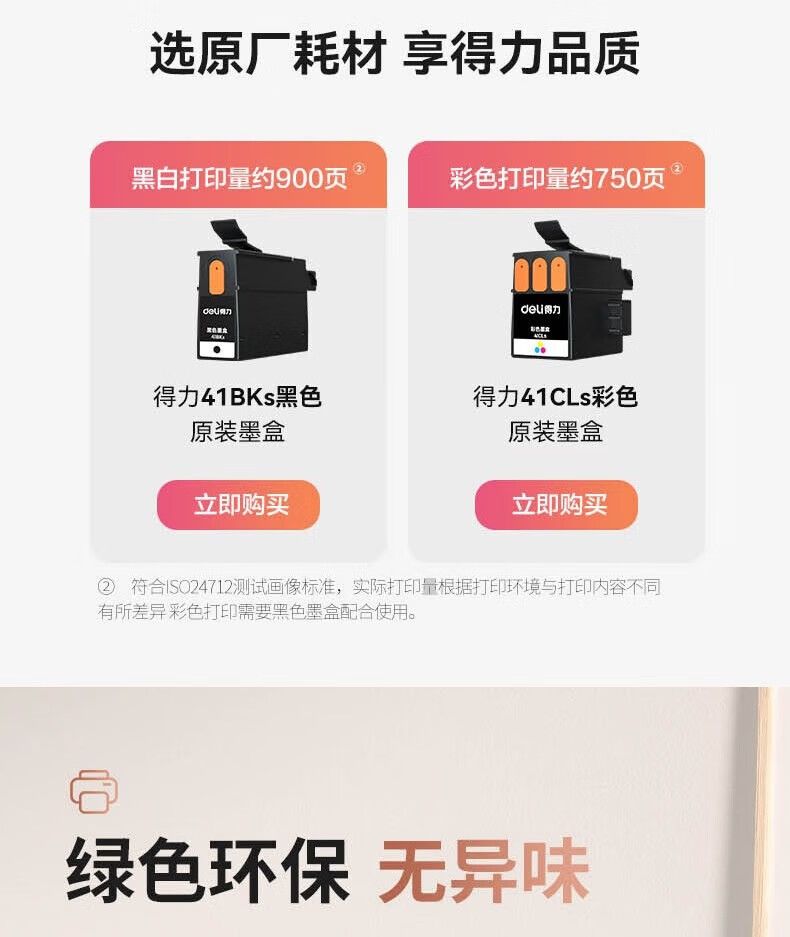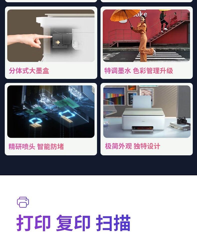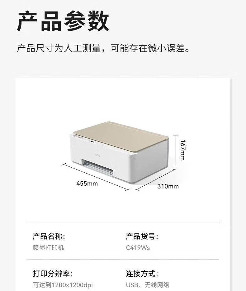 商品名称:得力 C419Ws彩色喷墨多功能一体机(浅咖色)*1台