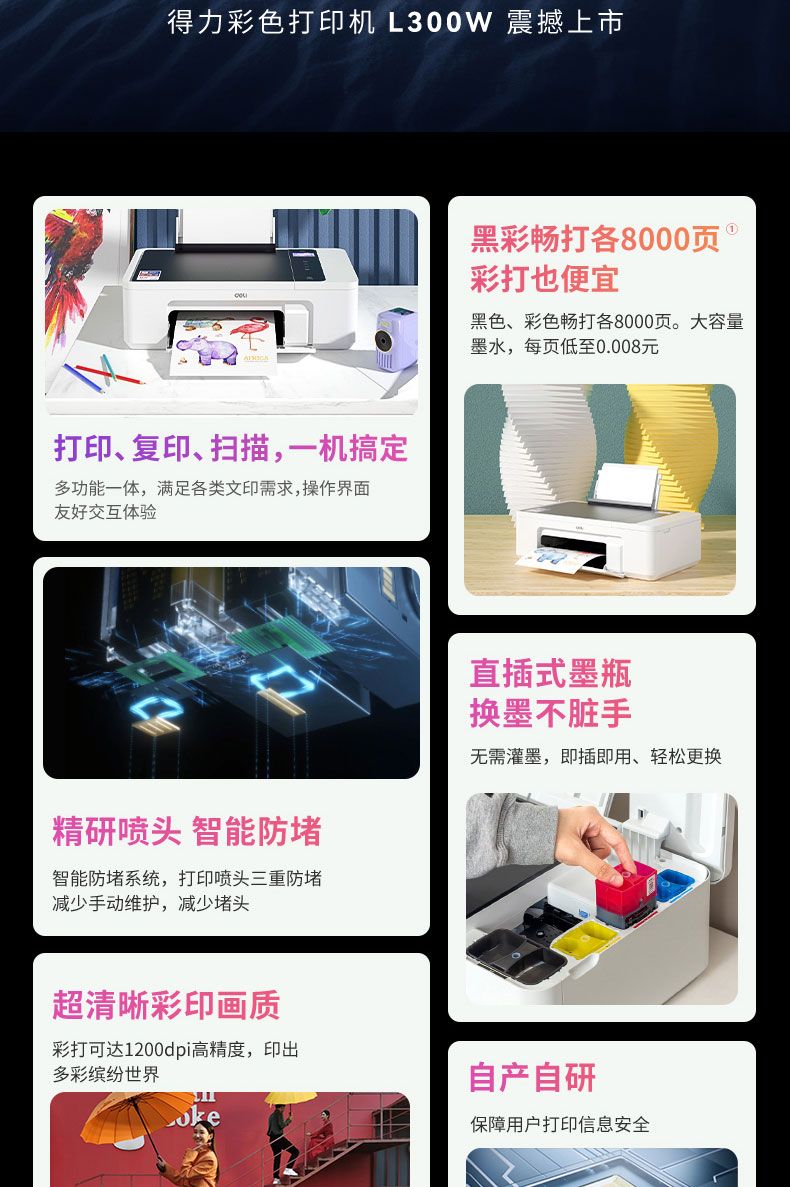 得力 L300W彩色喷墨多功能一体机(白色)*1台