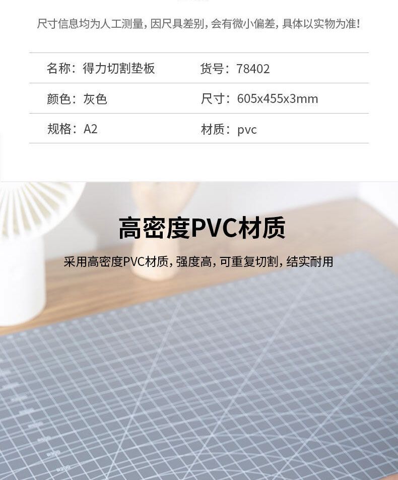 商品名称:得力 78402灰色切割垫板(灰)(块)605x455x3mm*2块