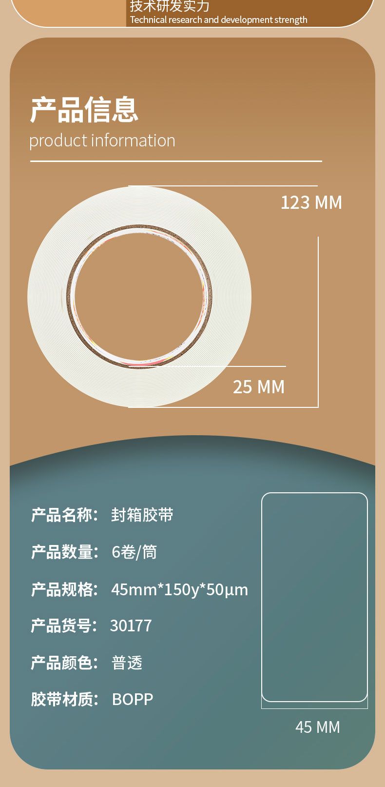 商品名称:得力 30177封箱胶带45mm*150y*50um(6卷/筒)(普透)*2筒