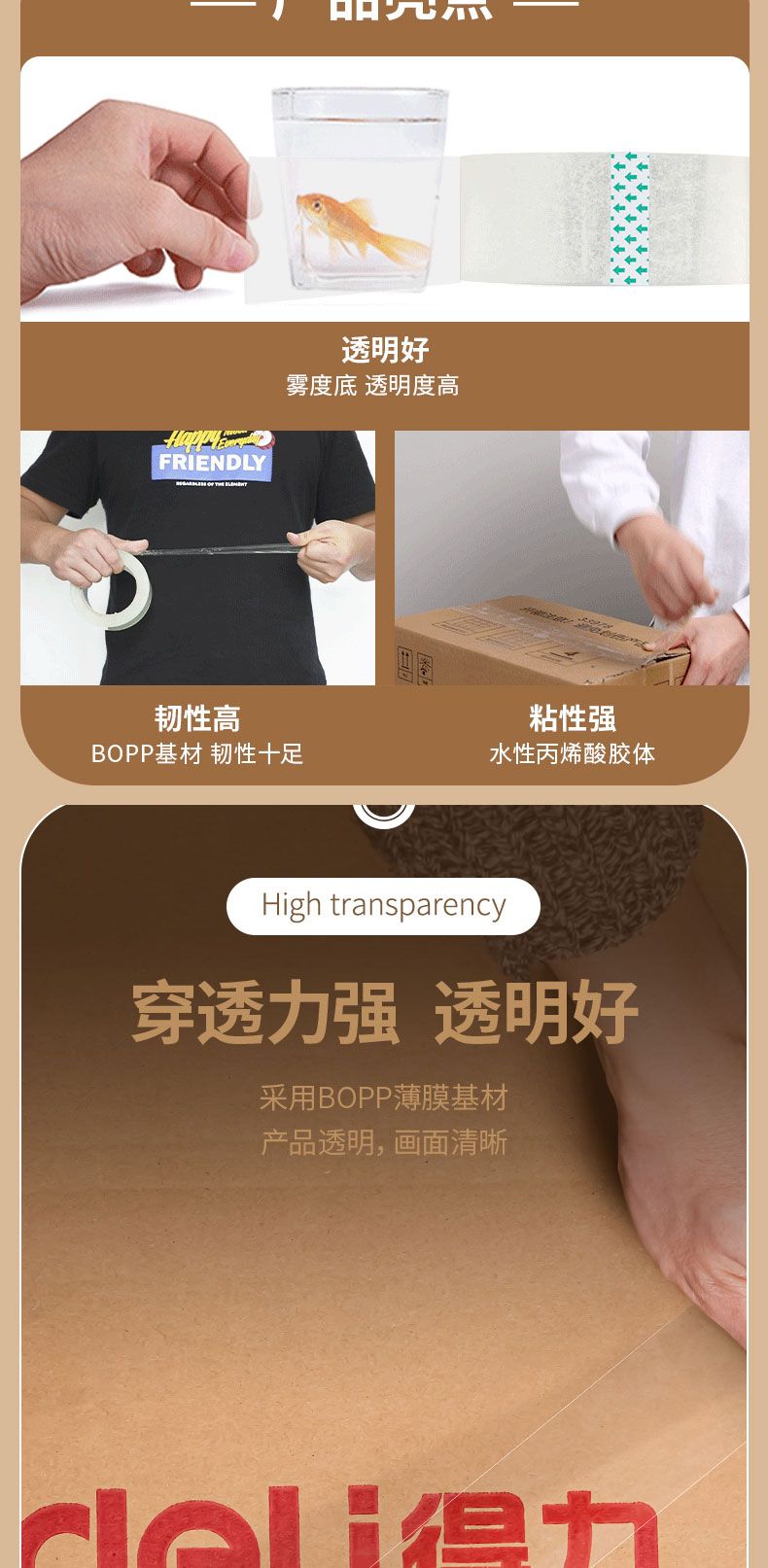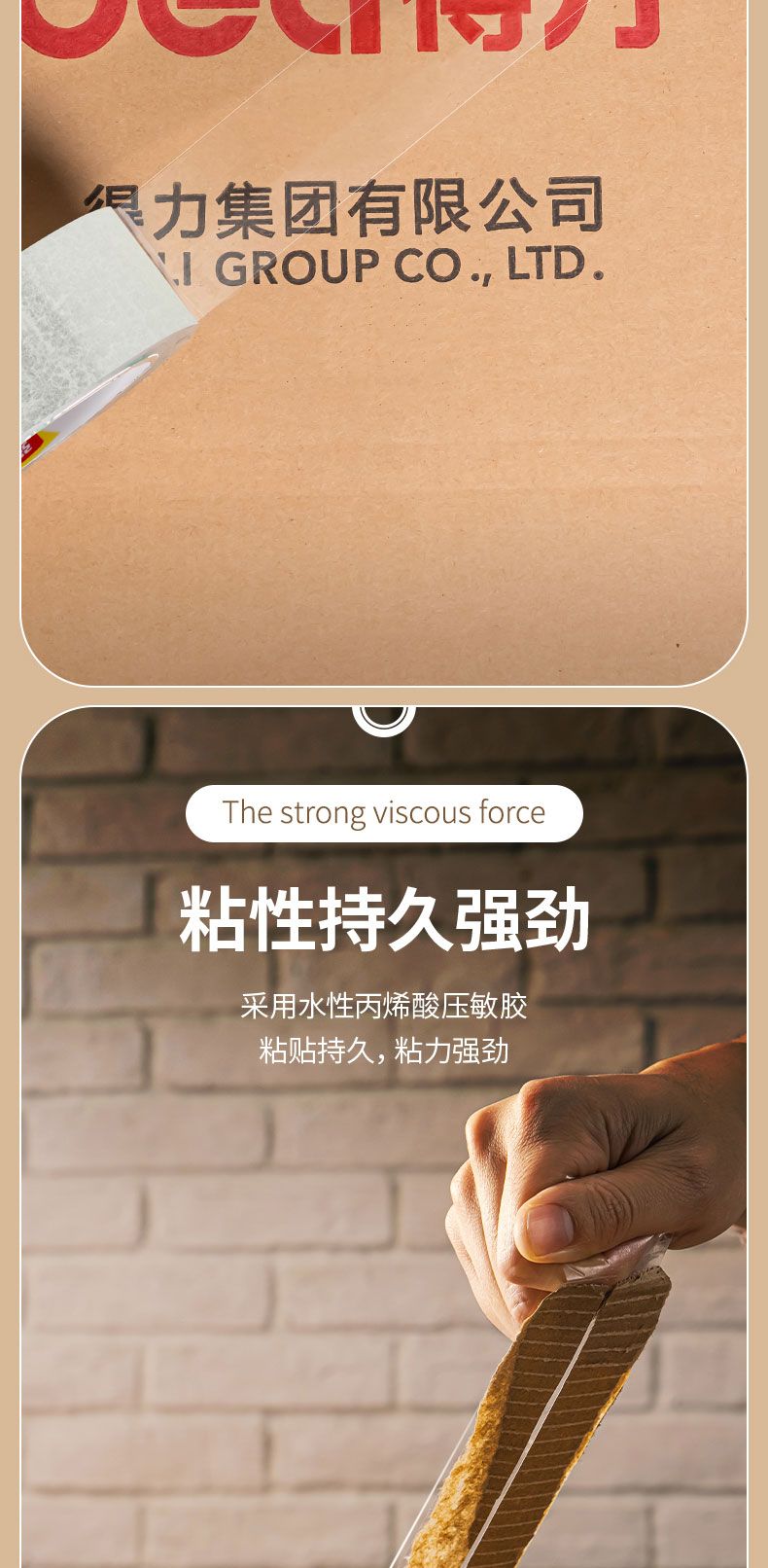 商品名称:得力 30214封箱胶带48mm*150y*45um(6卷/筒)(普透)*2筒