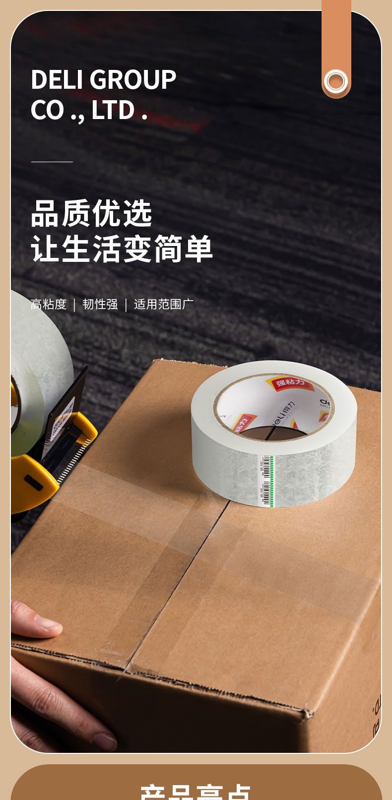 商品名称:得力 30333封箱胶带60mm*100y*45um(6卷/筒)(普透)*2筒