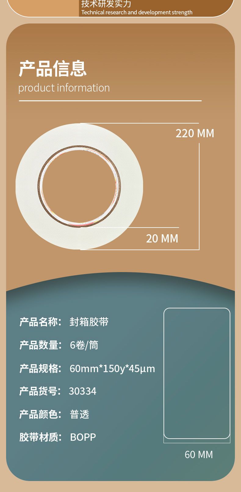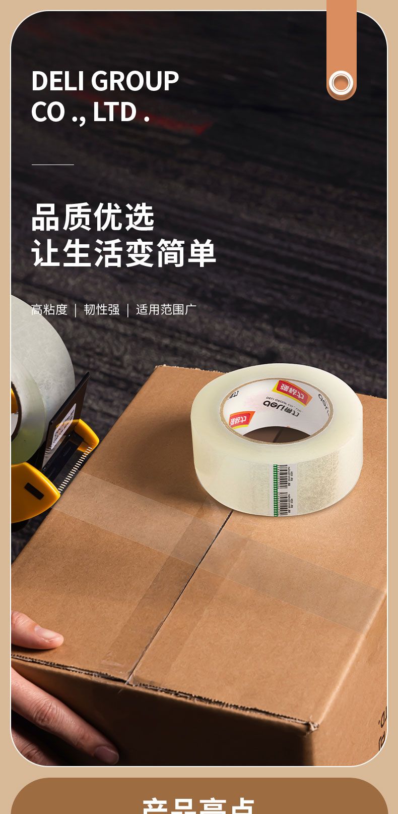 商品名称:得力 30334封箱胶带60mm*150y*45um(6卷/筒)(普透)*2筒