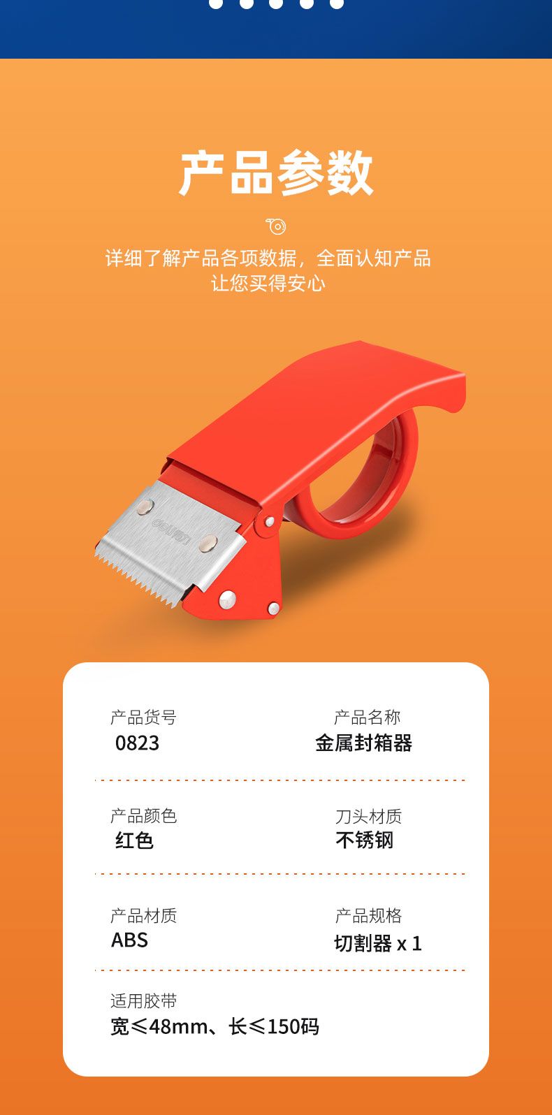 商品名称:得力 0823金属封箱器(红)*8只