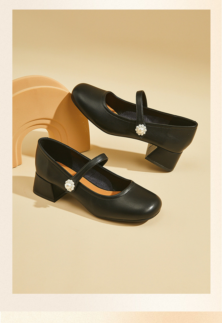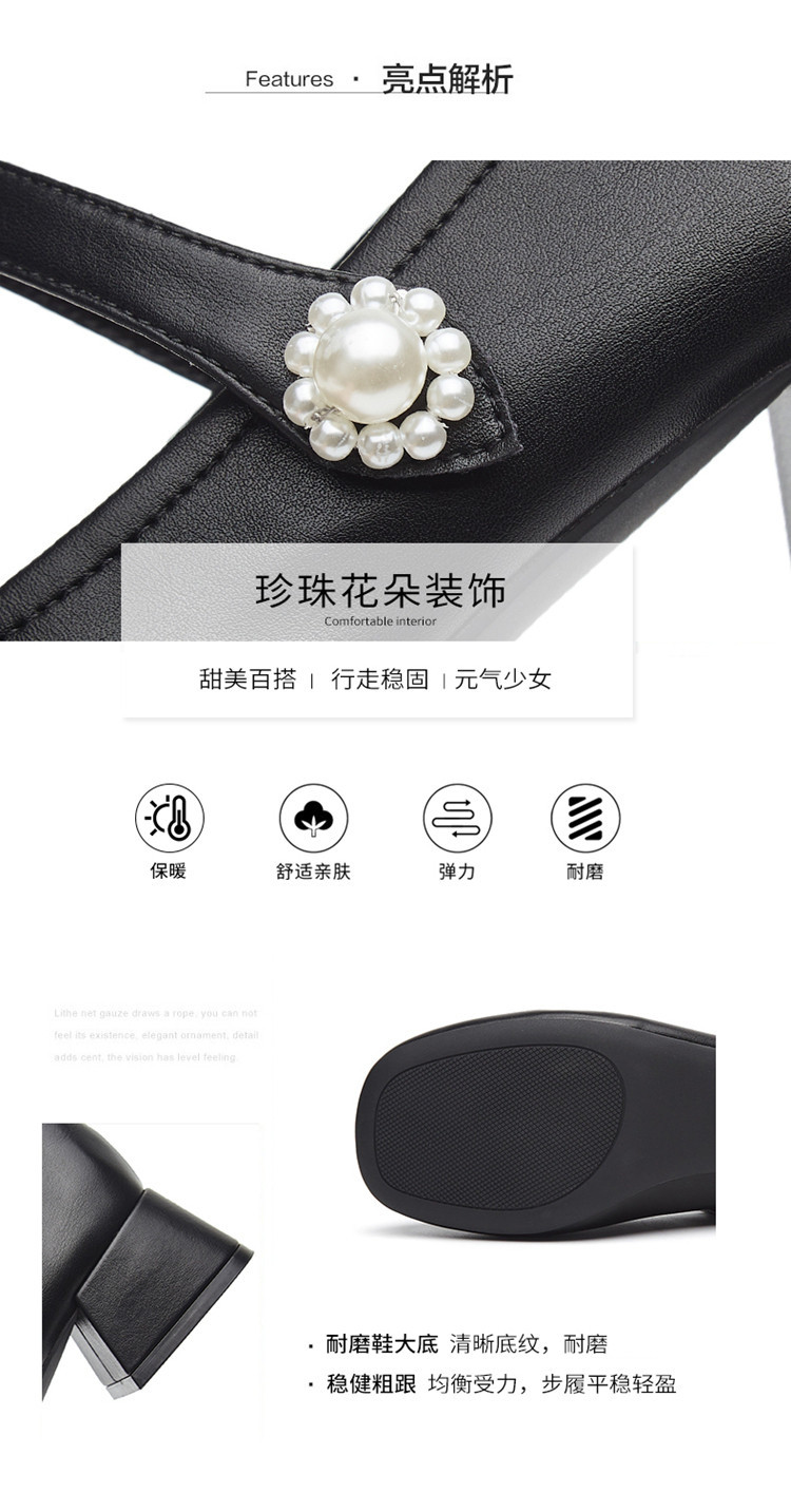 商品名称:夏季玛丽珍鞋女百搭通勤鞋舒适透气一脚蹬单鞋粗跟浅口时装鞋女鞋 280727
