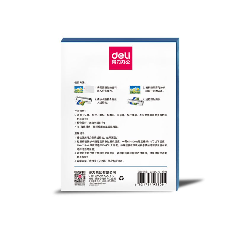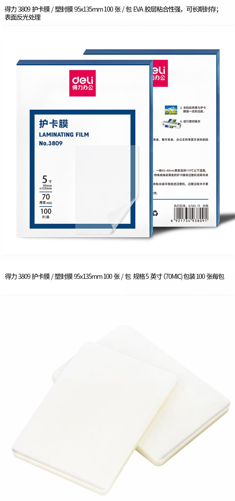 商品名称:得力 3809护卡膜(透明)(100片/包)*7包