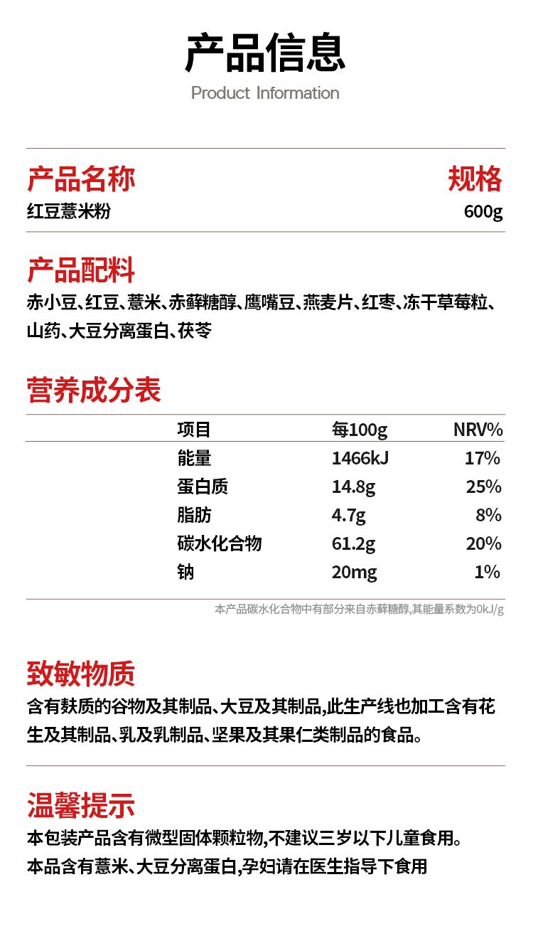 商品名称:谷之优品 红豆薏米粉600g/罐