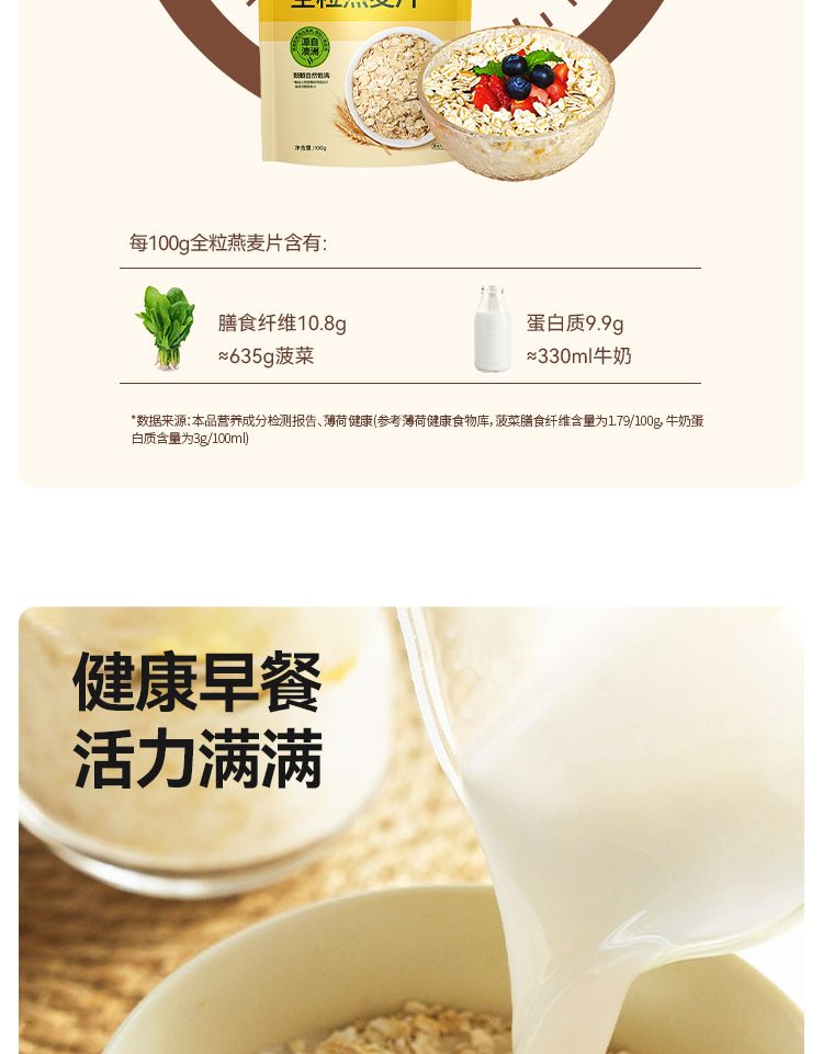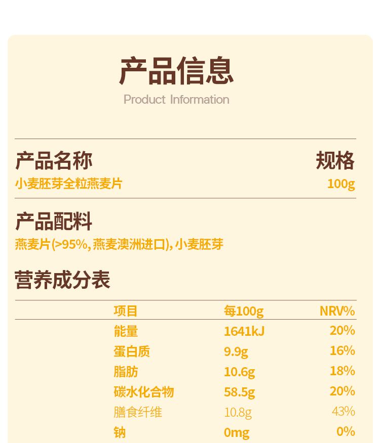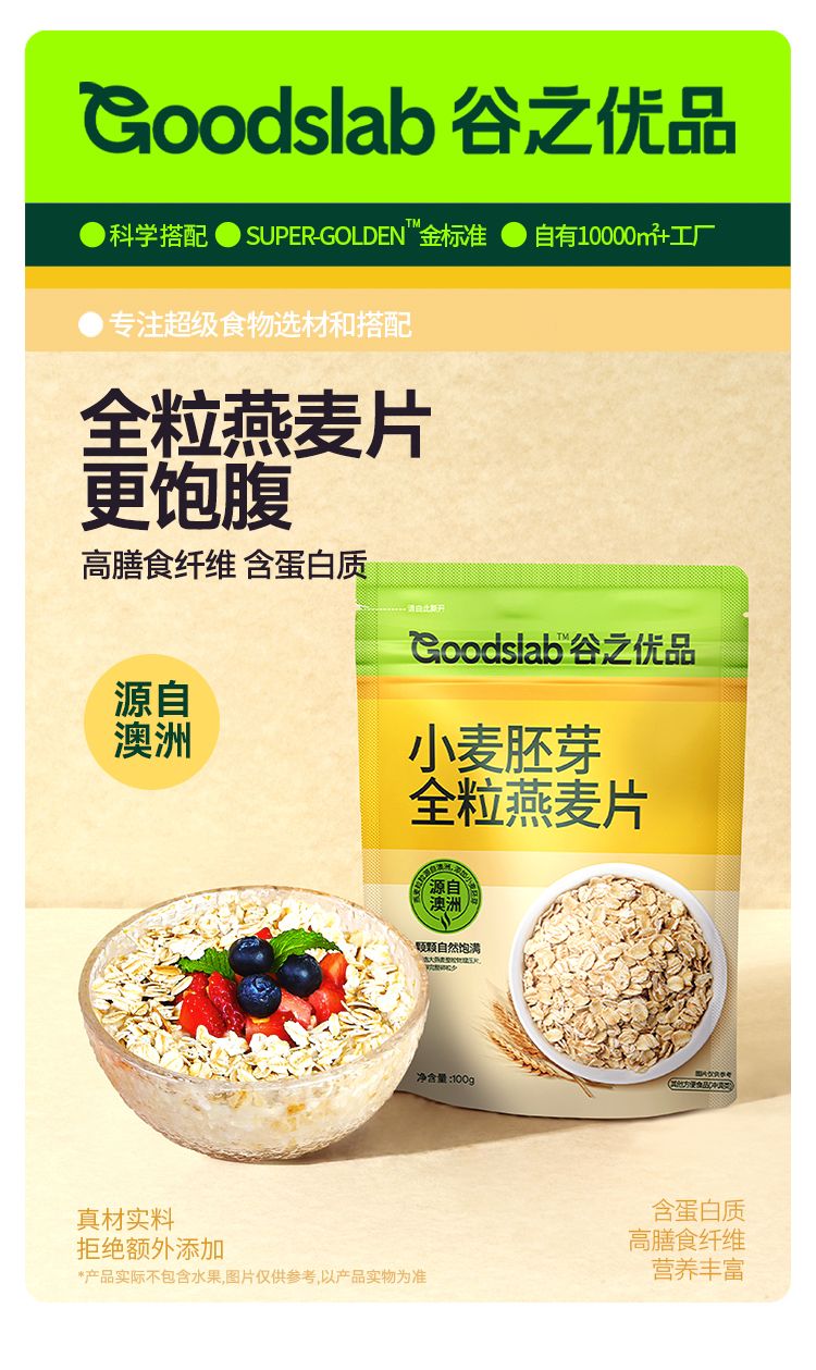 商品名称:谷之优品全粒燕麦片100g*3袋