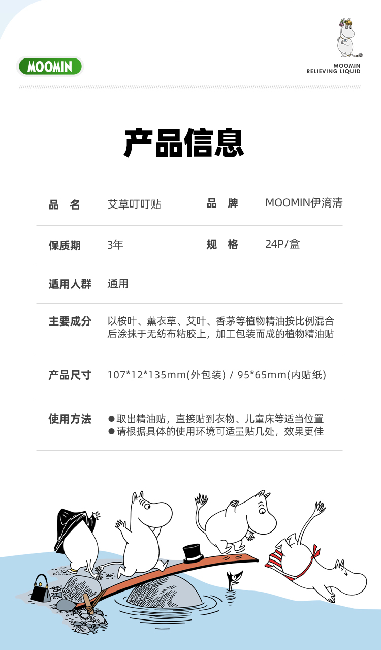 商品名称:MOOMIN伊滴清植物精油贴