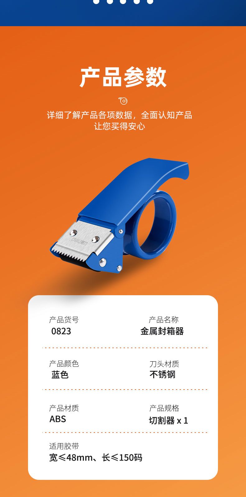 商品名称:得力 0823金属封箱器(蓝)*8只