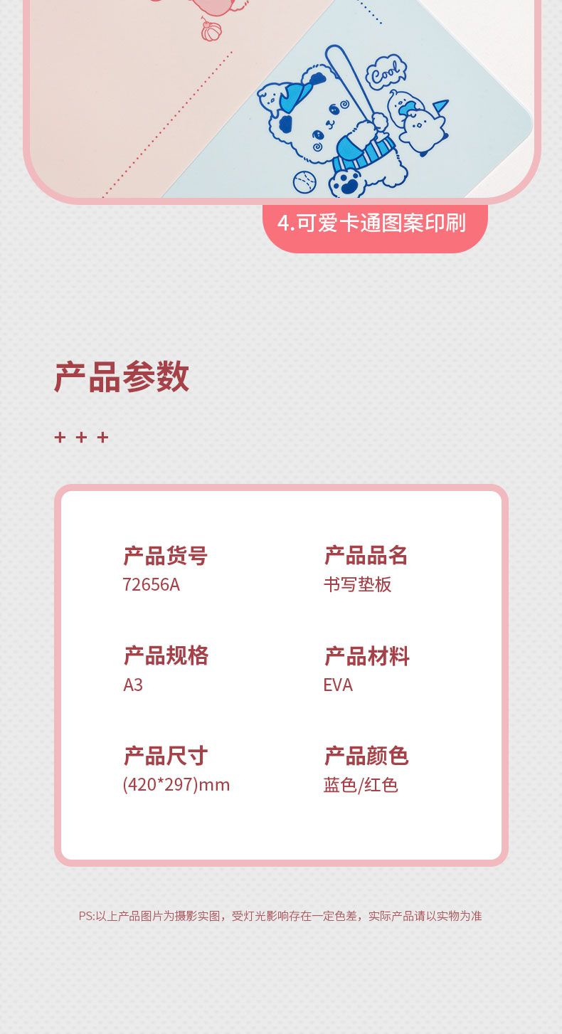 商品名称:得力 72656A_A3书写垫板-印刷款(蓝)420*297mm*8个