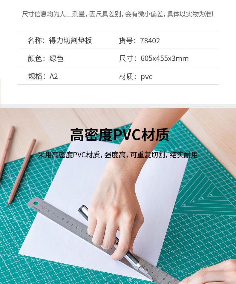商品名称:得力 78402切割垫板(绿)605x455x3mm*2块