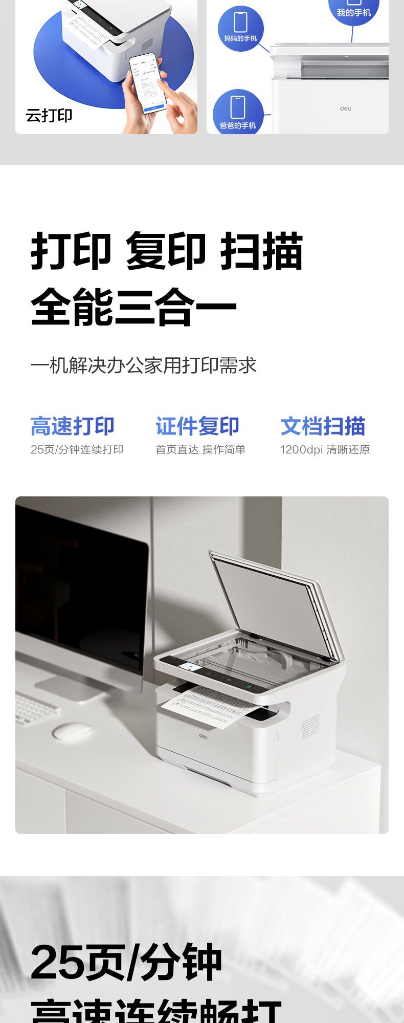 得力 M2000DWs黑白激光多功能一体机(白色)*1台