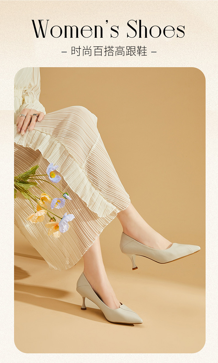 商品名称:夏季尖头细跟高跟鞋百搭女单鞋气质优雅时装鞋女职业商务通勤鞋女 434391