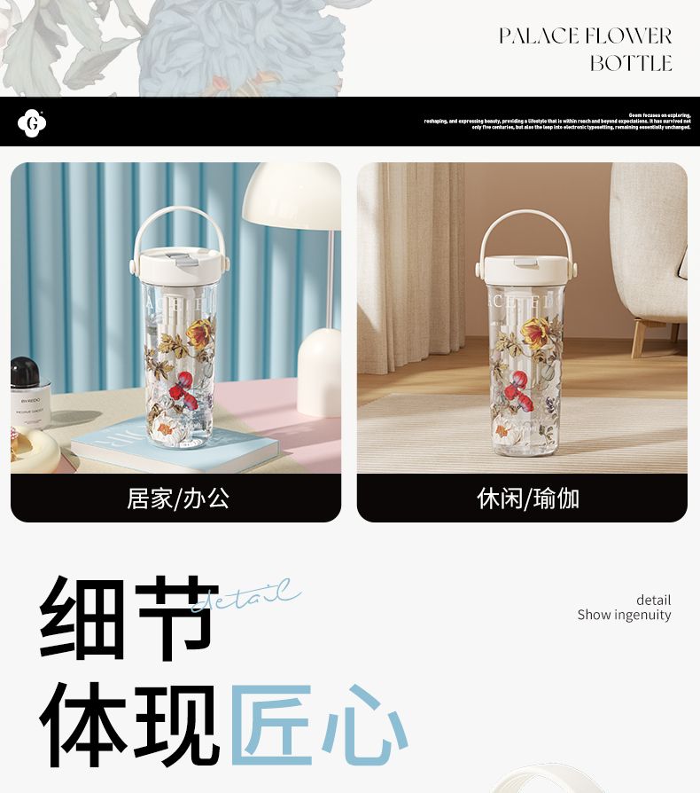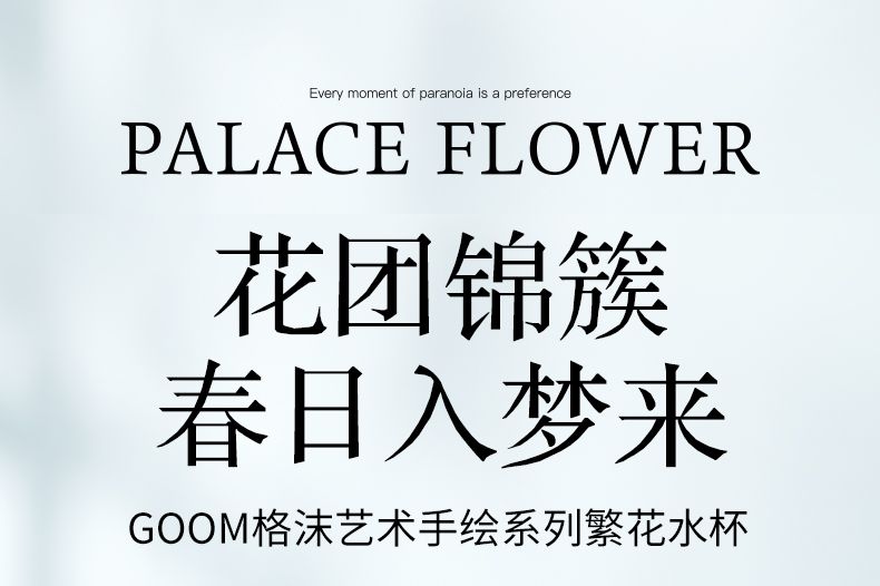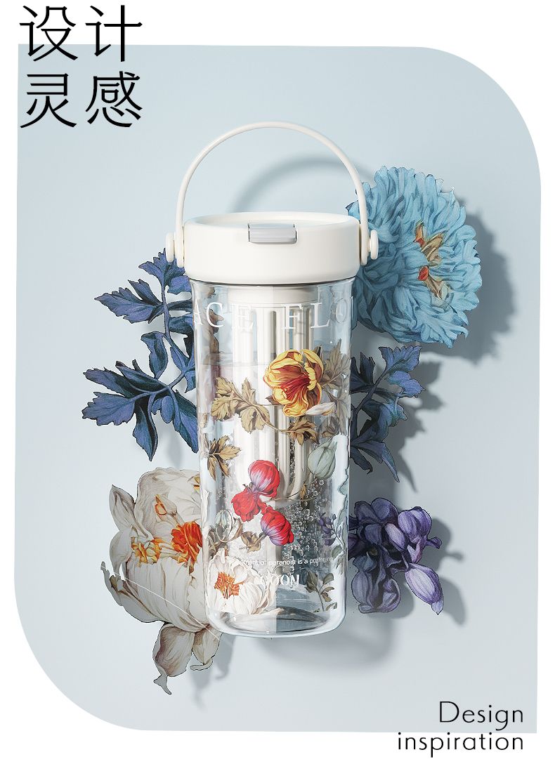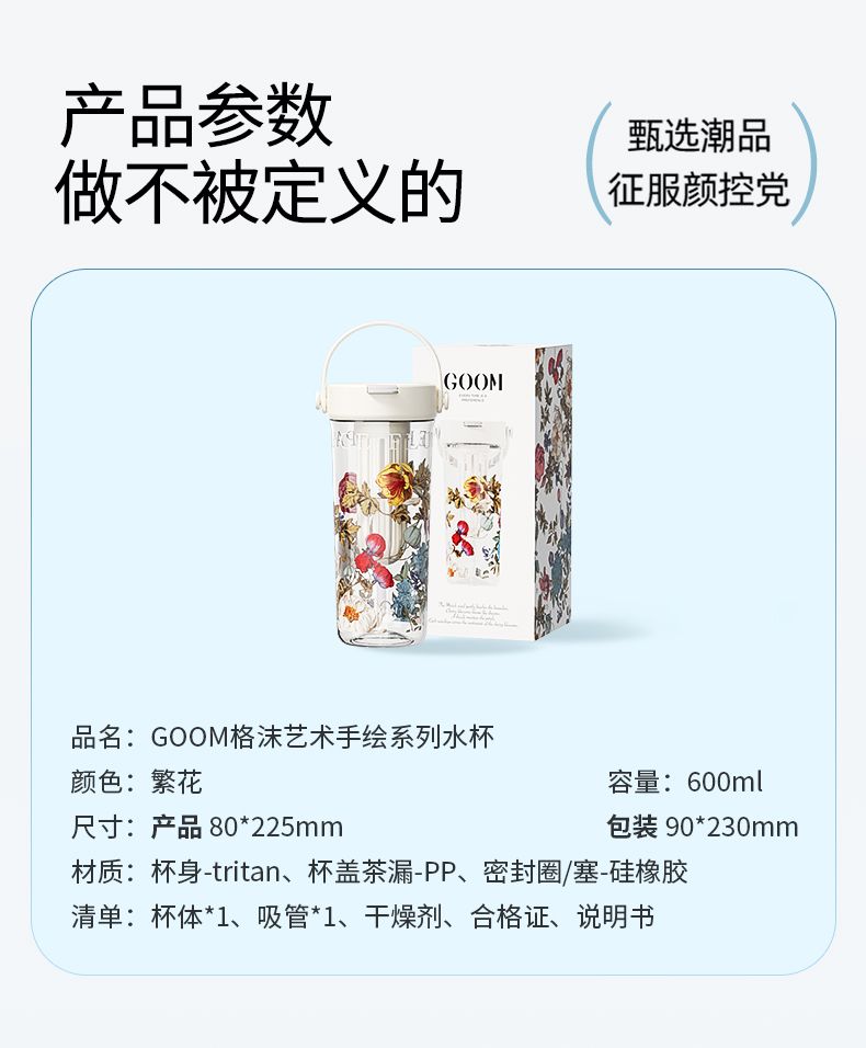 商品名称:GOOM格沫艺术手绘系列水杯(繁花)600ml