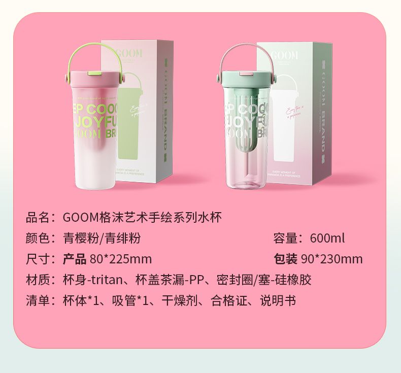商品名称:GOOM格沫艺术手绘系列水杯(渐变款)600ml