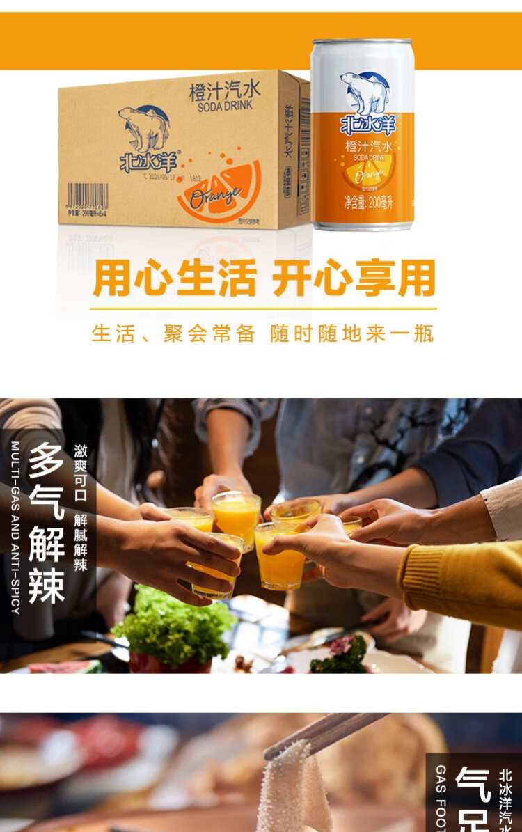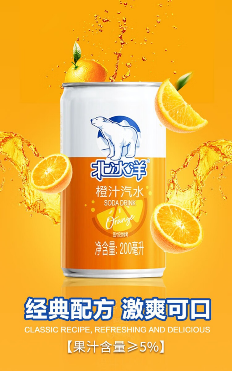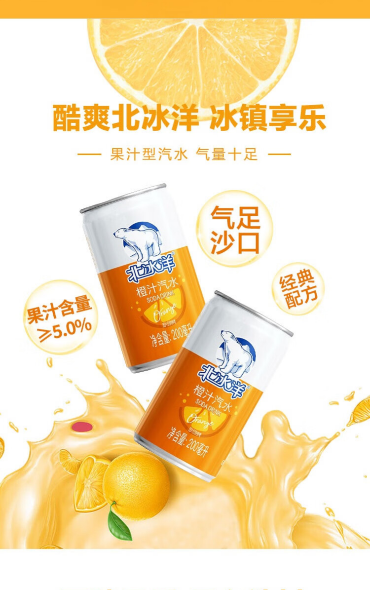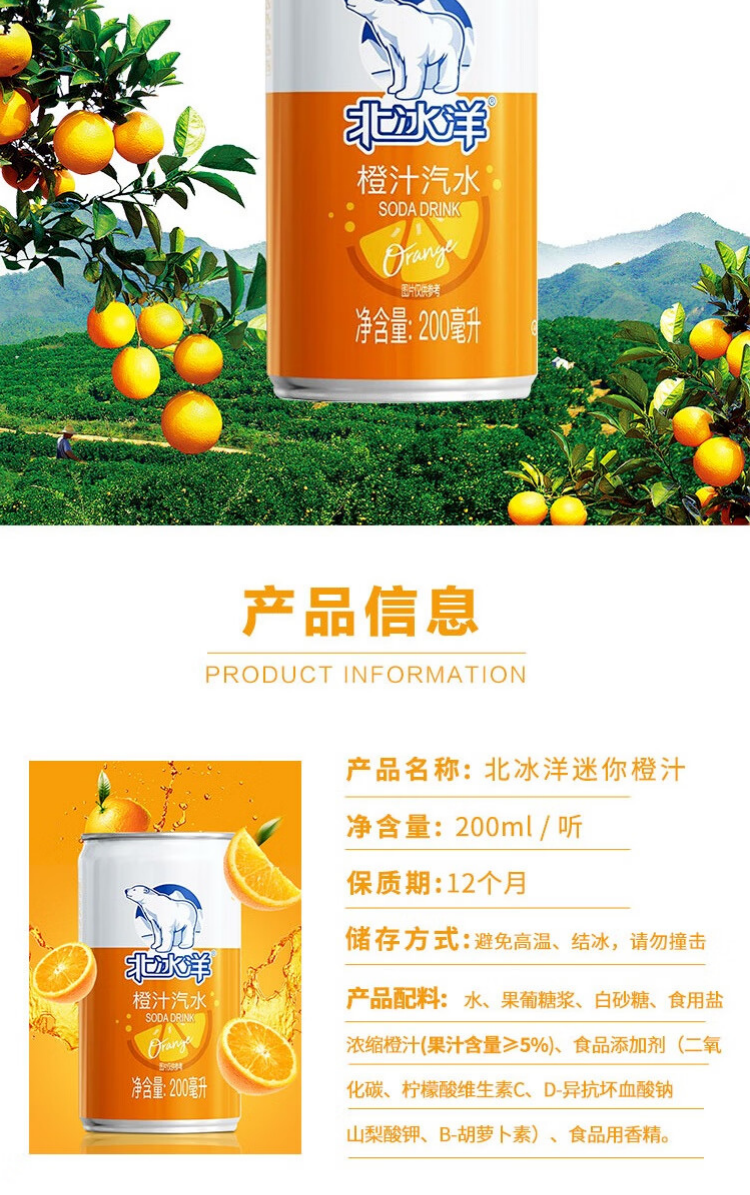 商品名称:【京东/顺丰配送】北冰洋迷你橙汁汽水200ml*24听
