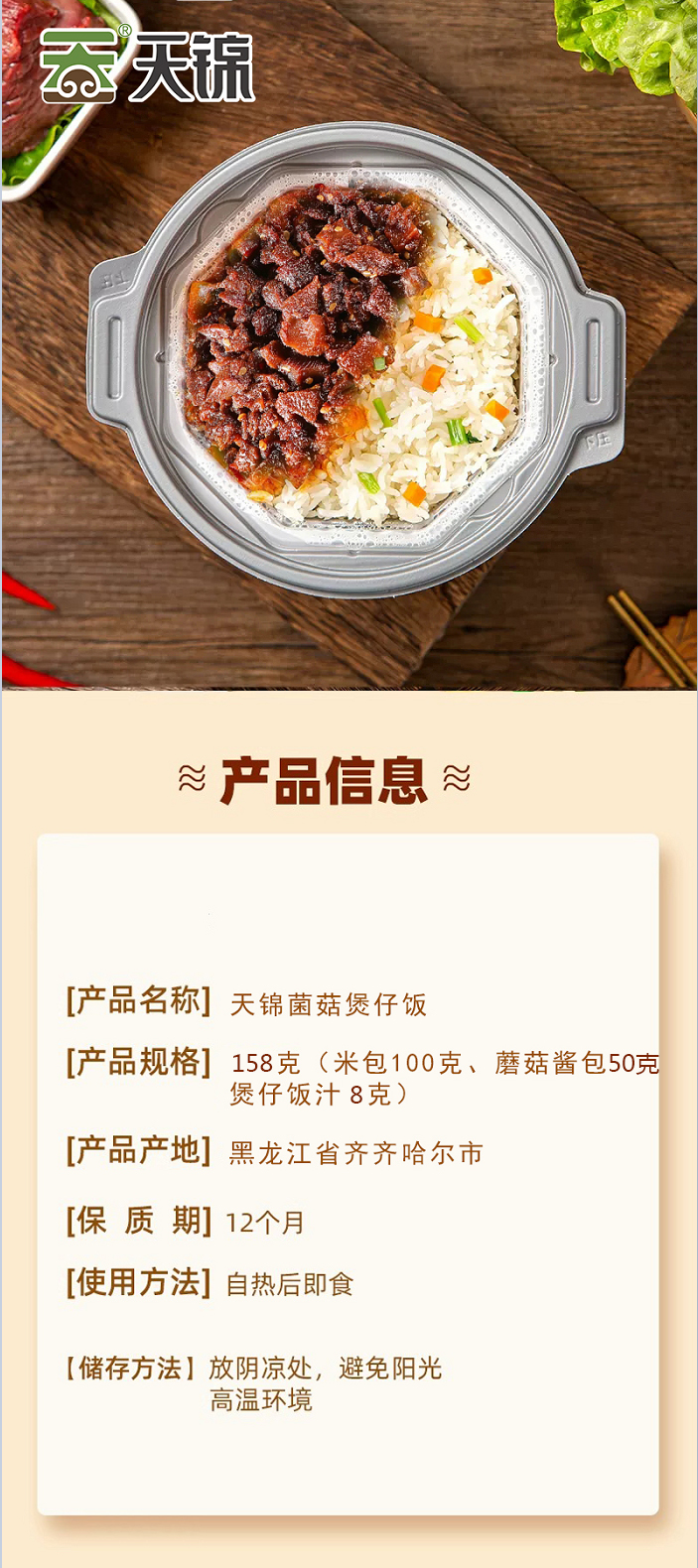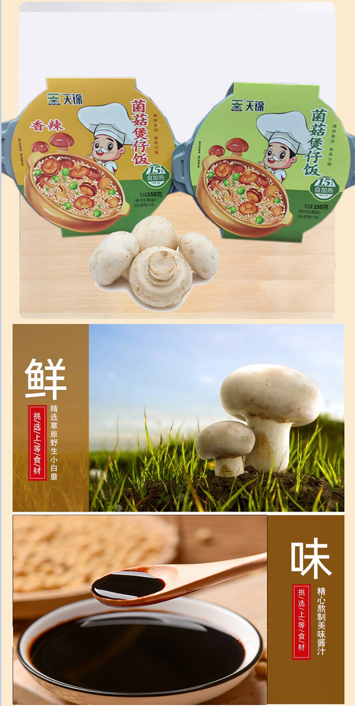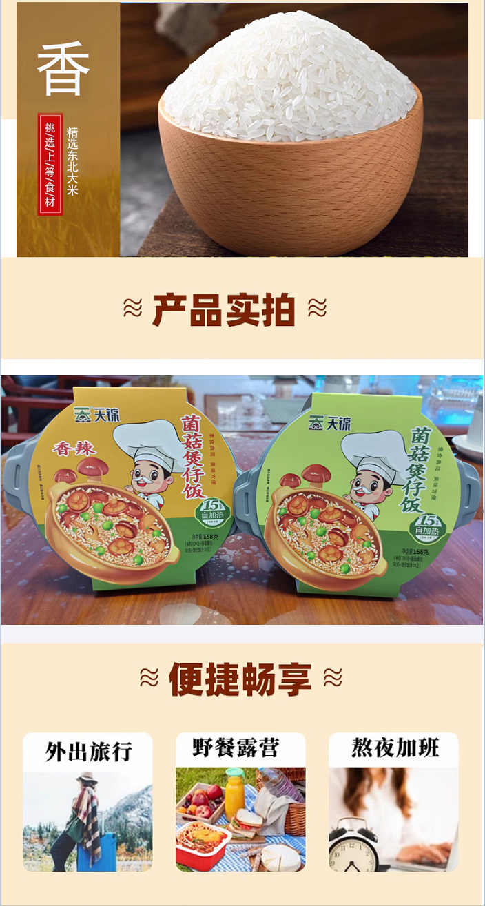 商品名称:天锦自加热菌菇煲仔饭158g