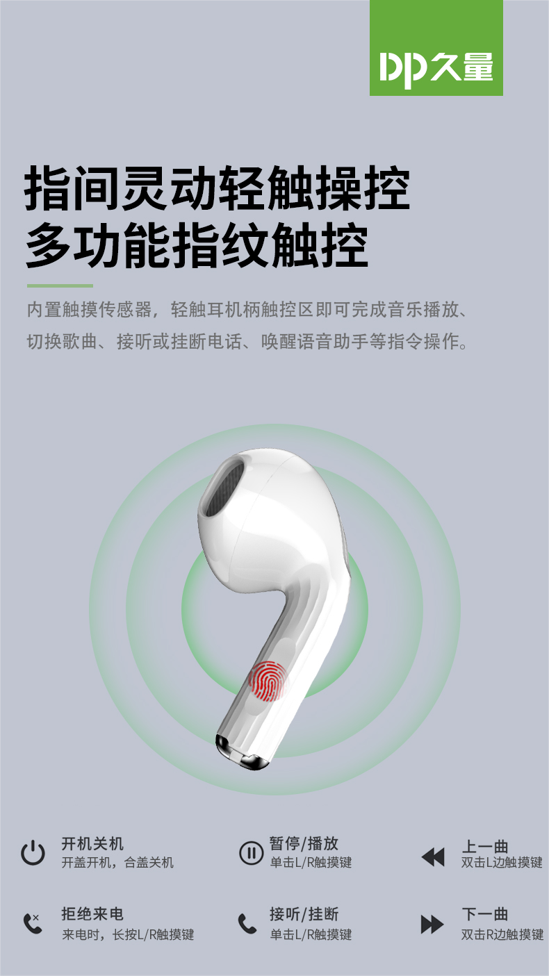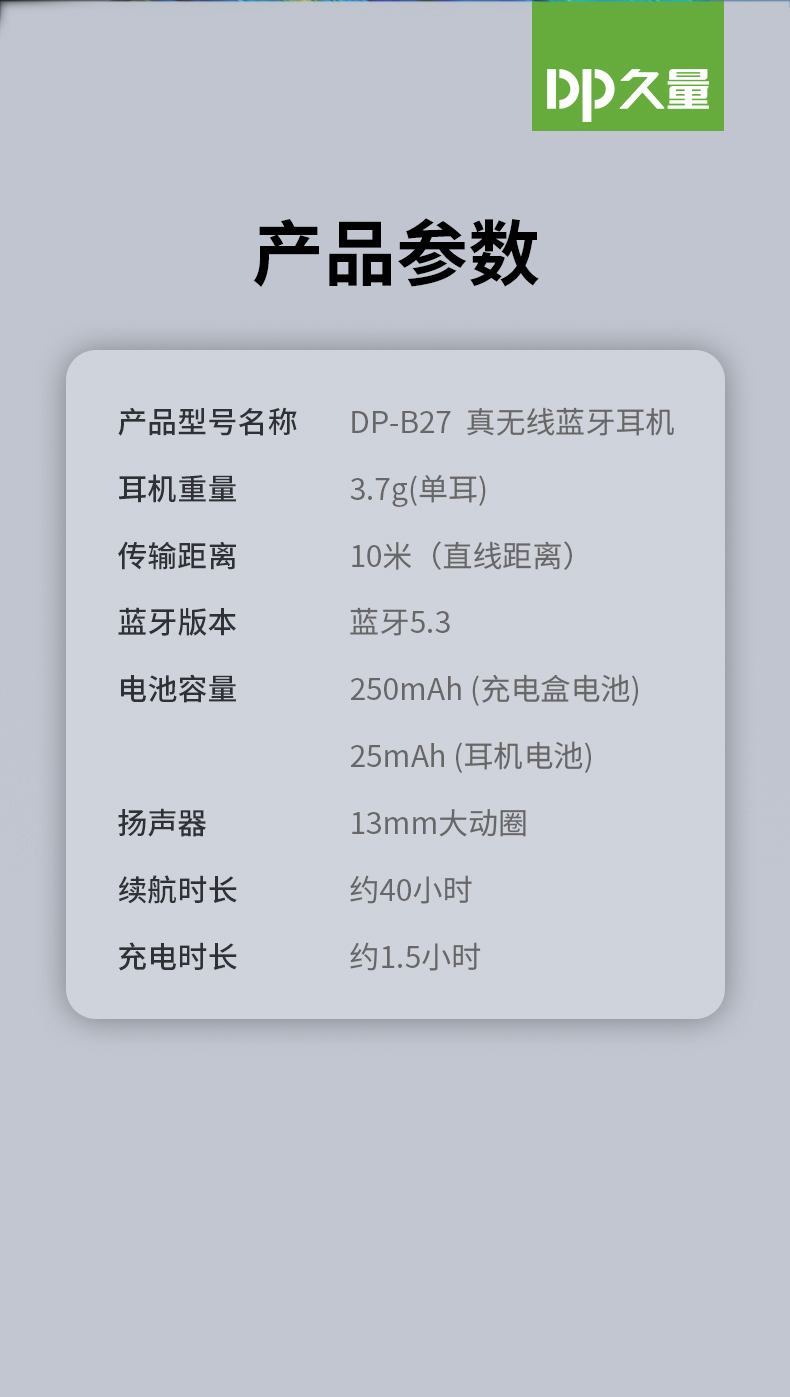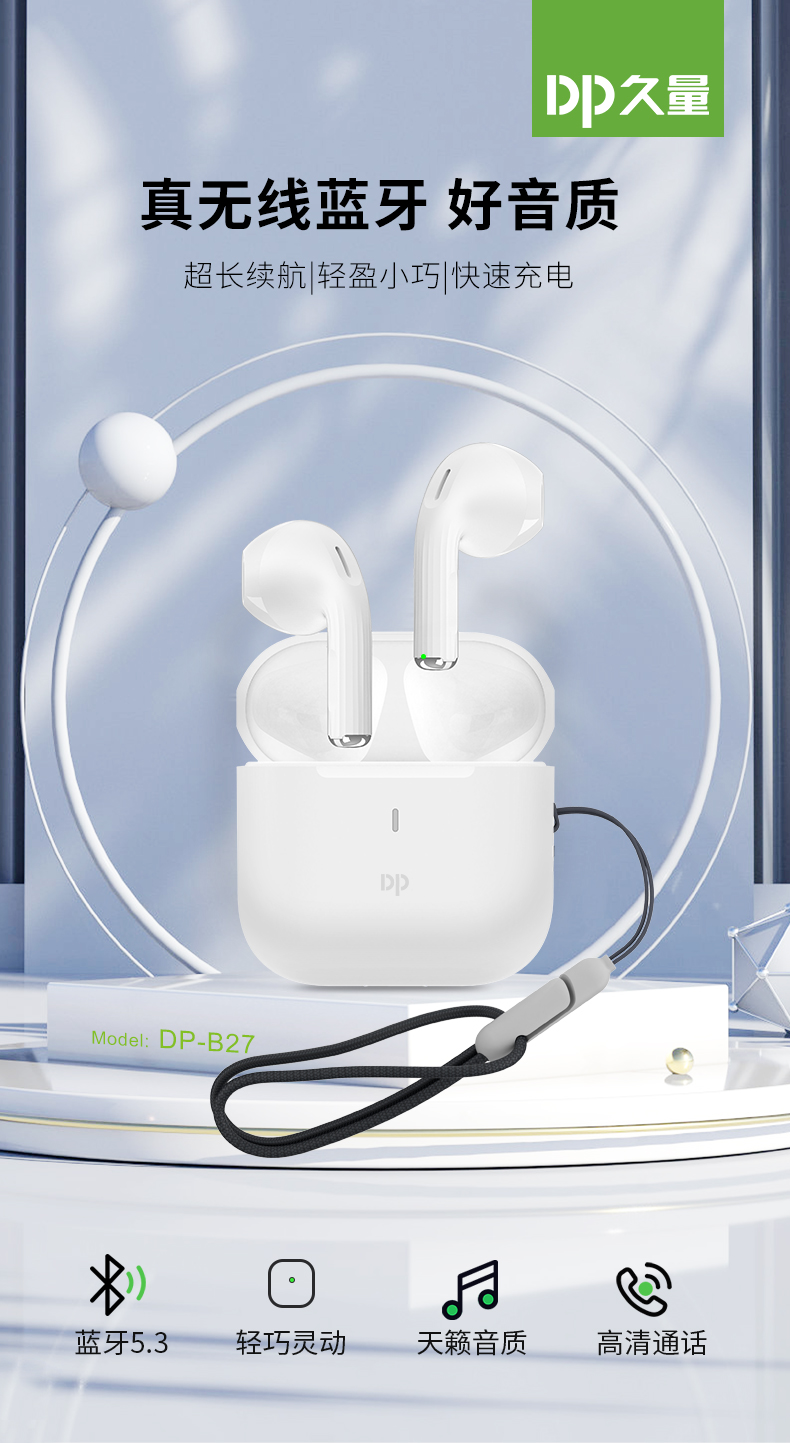 商品名称:DP/久量半入耳式TWS音乐蓝牙耳机DP-B27