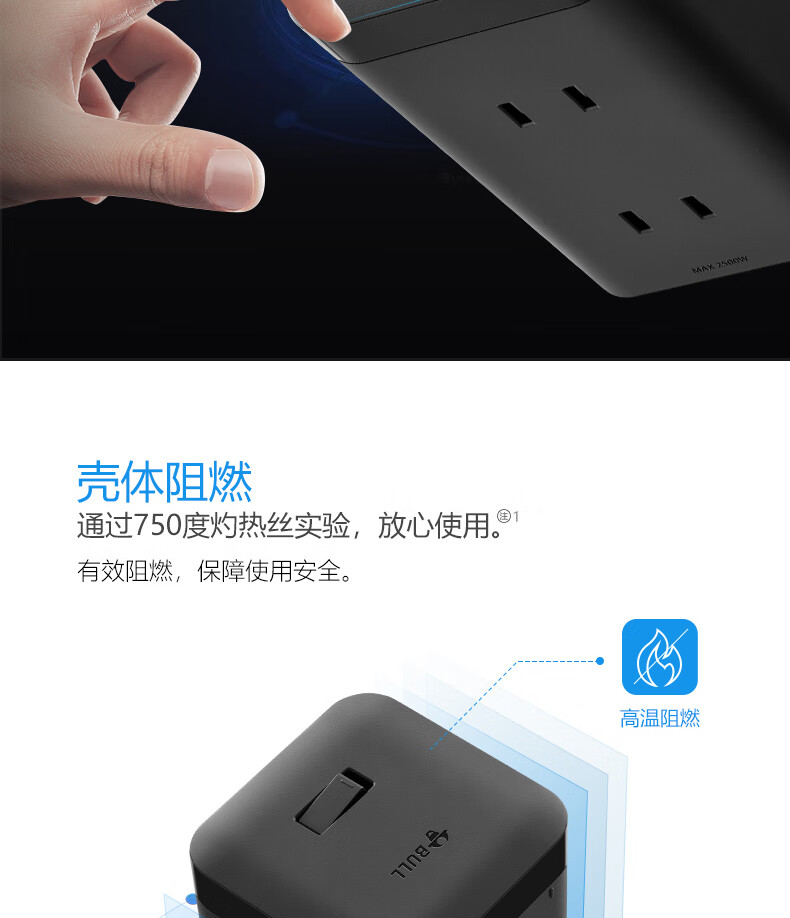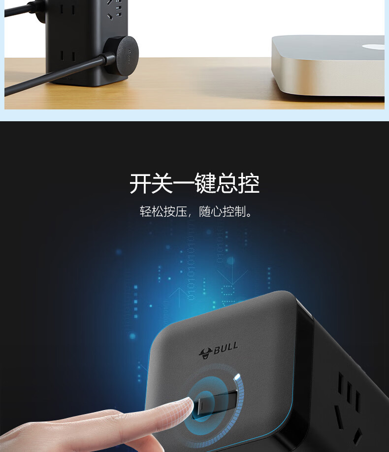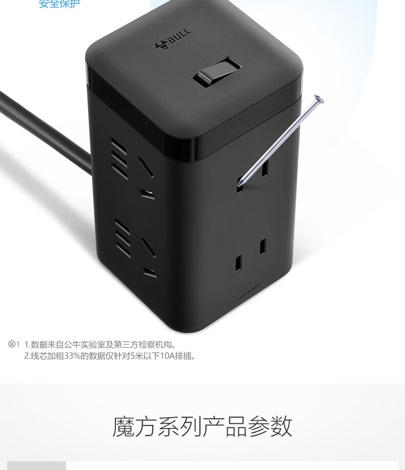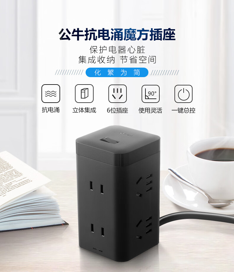 BULL/公牛1.8m抗电涌魔方插座1.8mTQU006