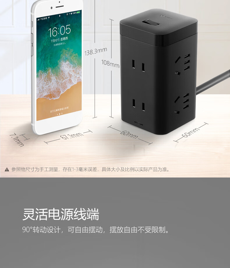 商品名称:BULL/公牛1.8m抗电涌魔方插座1.8mTQU006