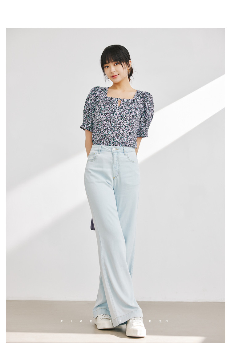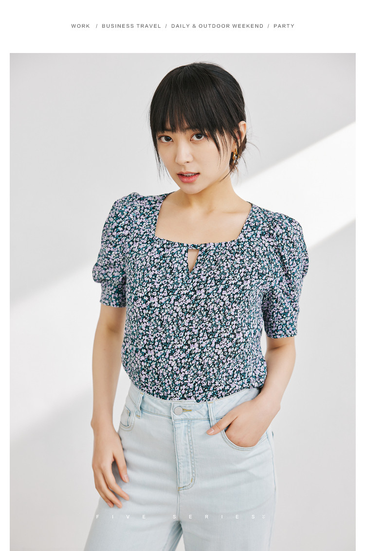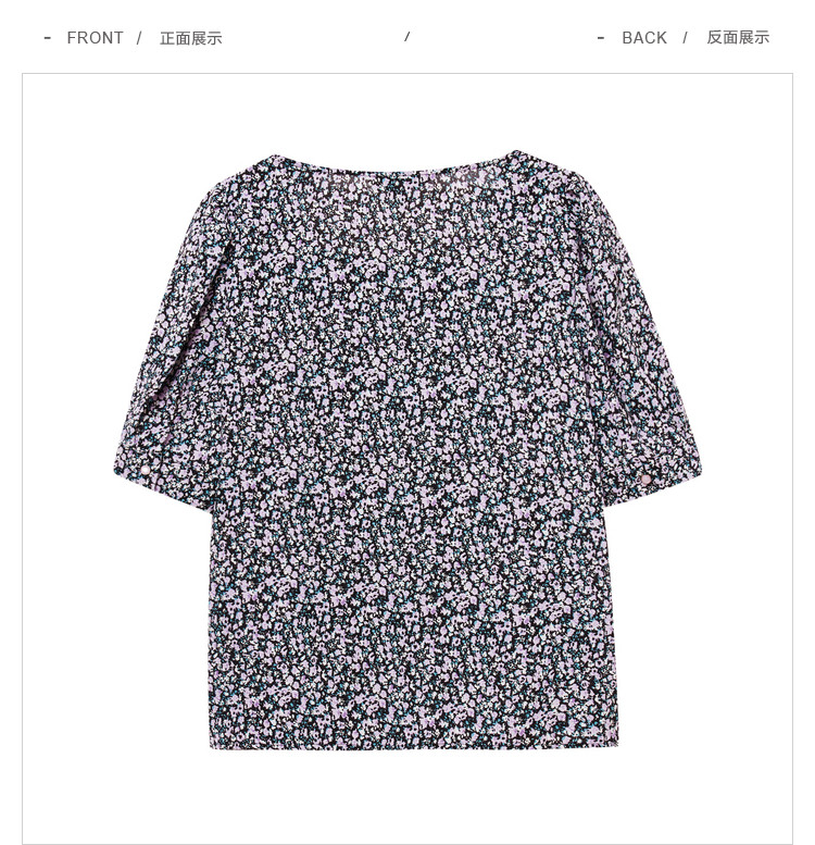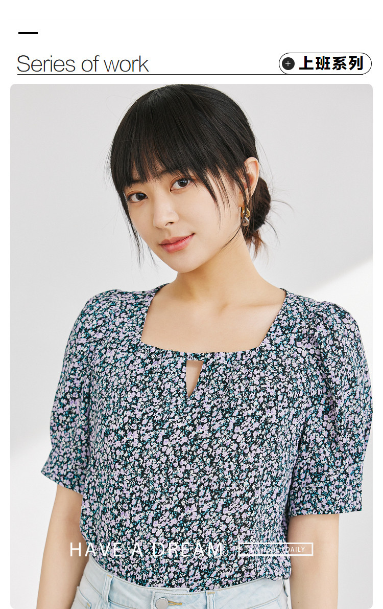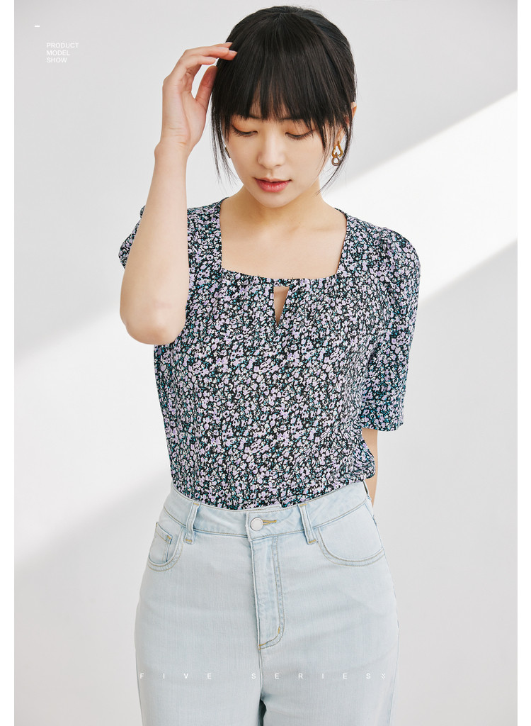 商品名称:短袖碎花雪纺衫女夏款清新百搭小众上衣女设计感气质方领衬衣女 855299