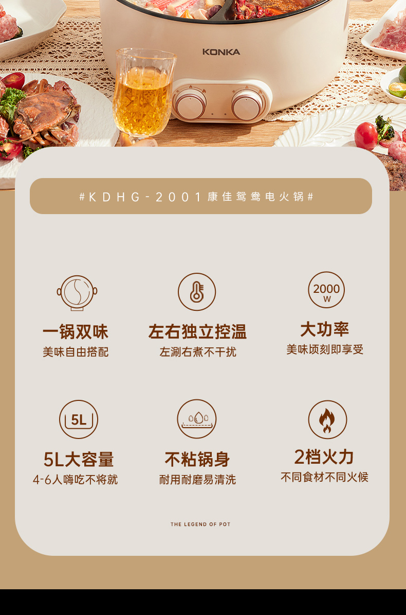 商品名称:KONKA/康佳5升鸳鸯电火锅KDHG-2001