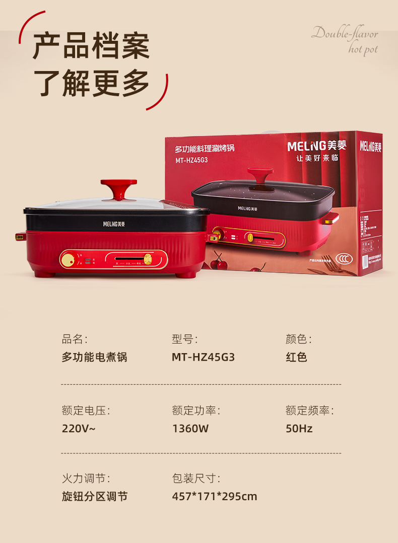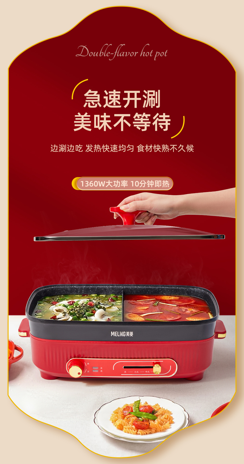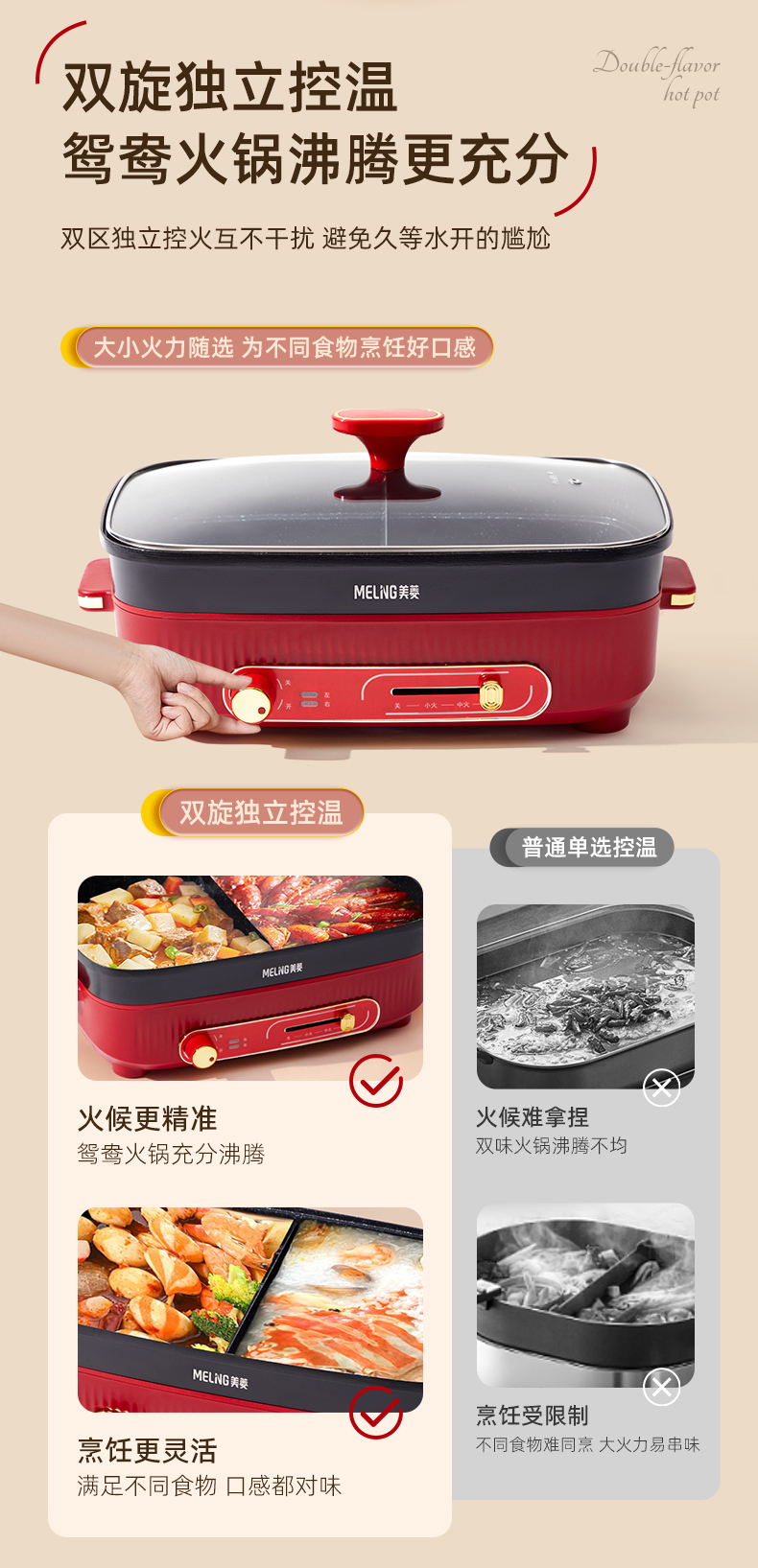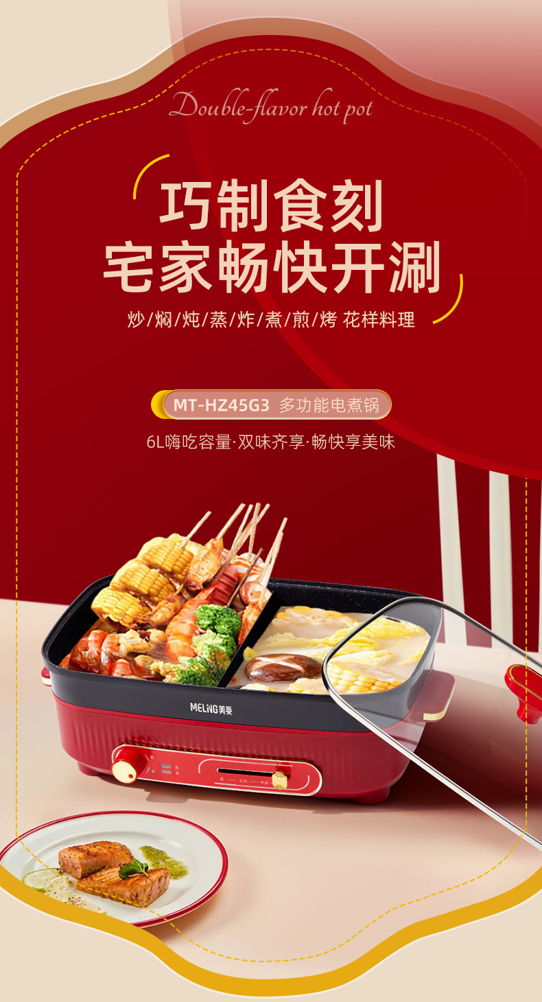 商品名称:MELING/美菱6升双控鸳鸯火锅MT-HZ45G3