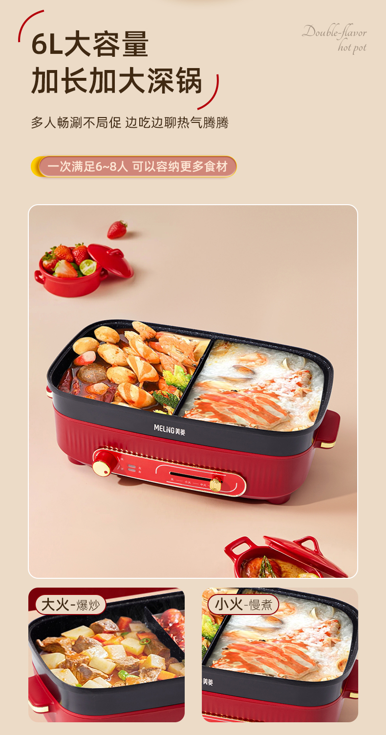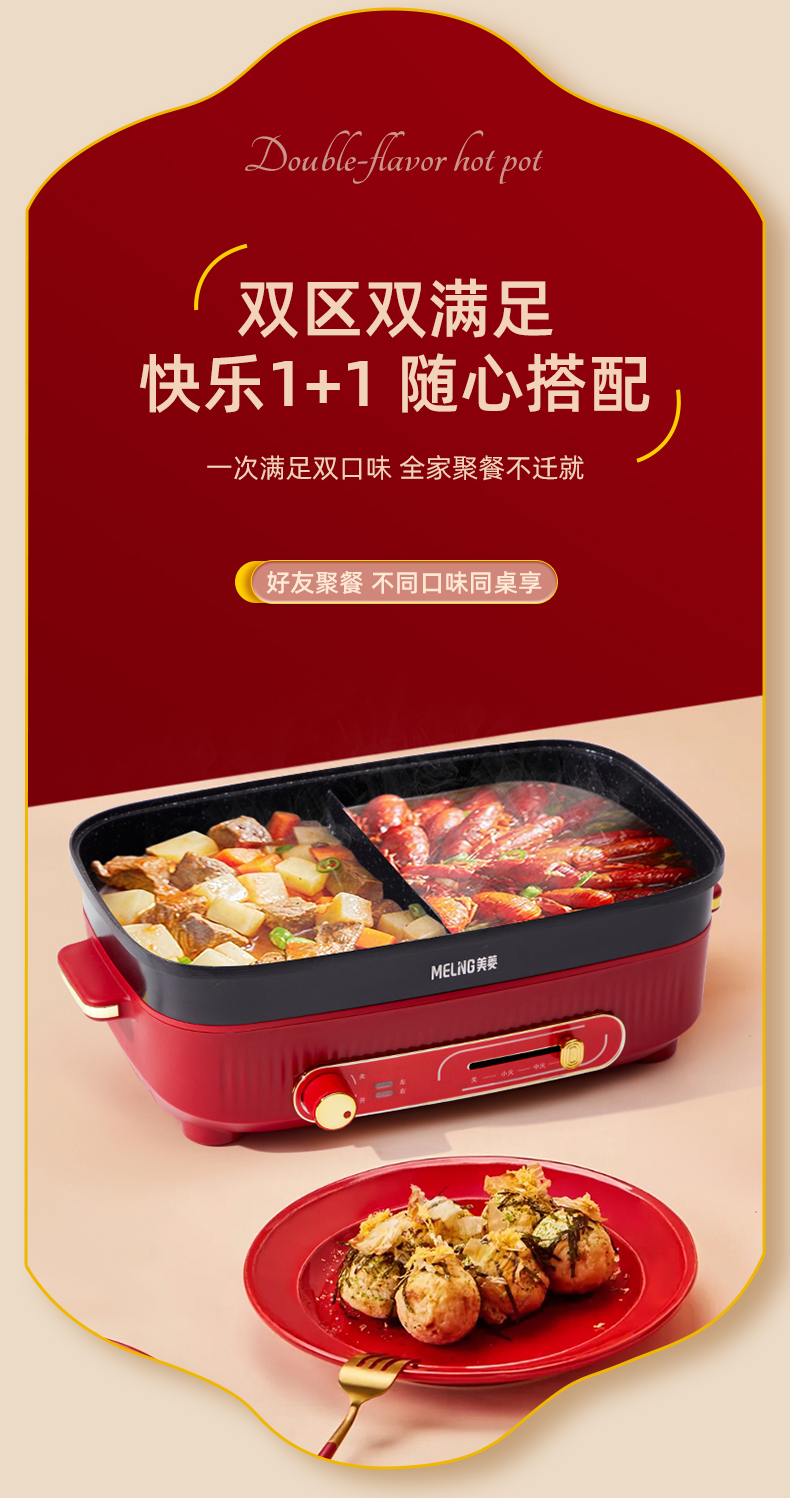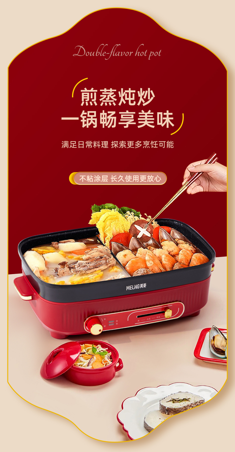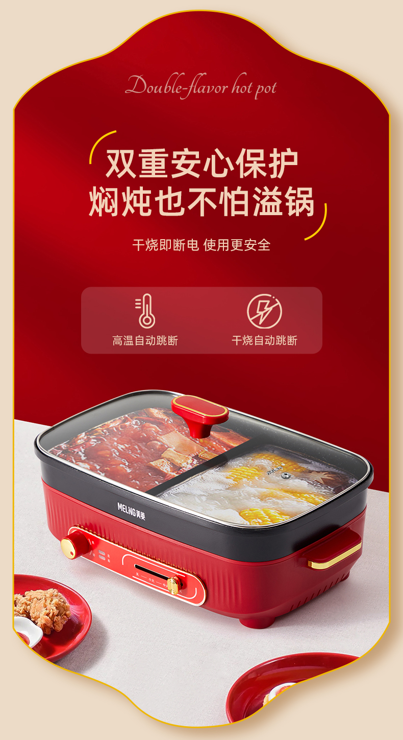 商品名称:MELING/美菱6升双控鸳鸯火锅MT-HZ45G3