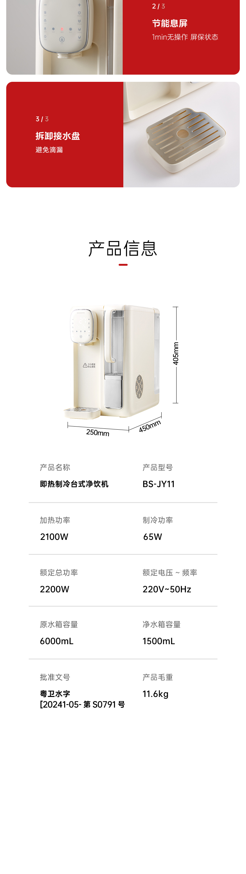 商品名称:BASSENS/巴森即热制冷台式净饮机BS-JY11