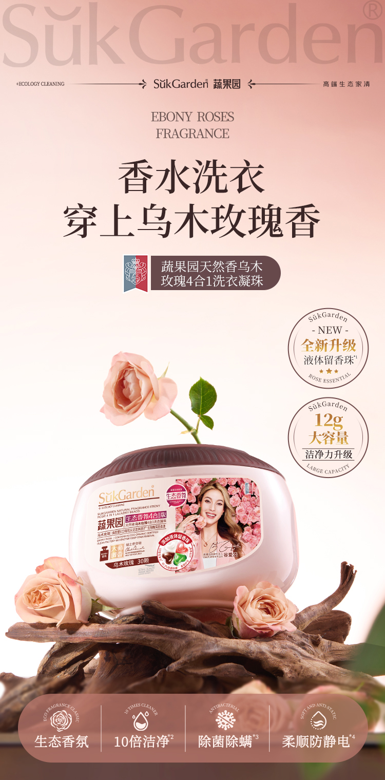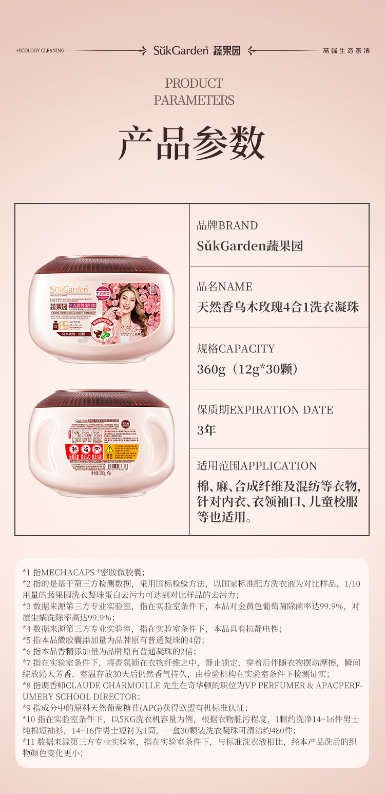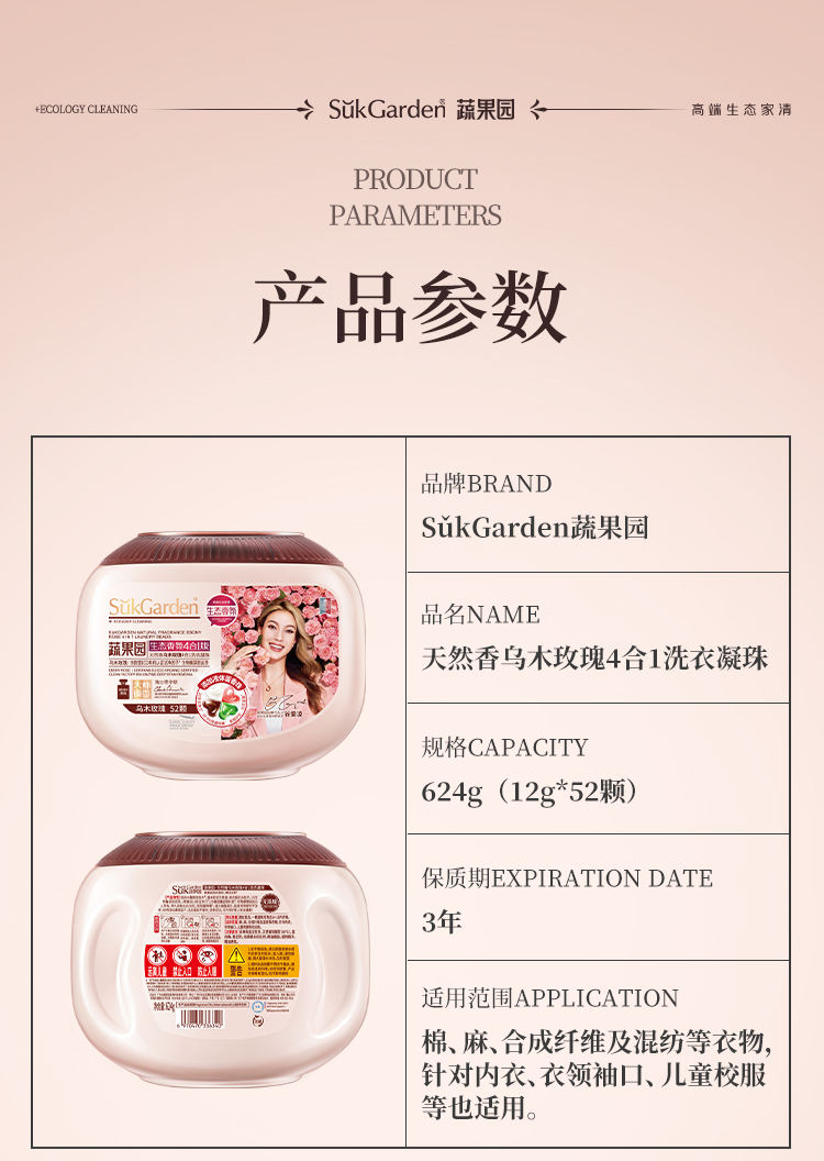 商品名称:SukGarden/蔬果园天然香乌木玫瑰4合1洗衣凝珠