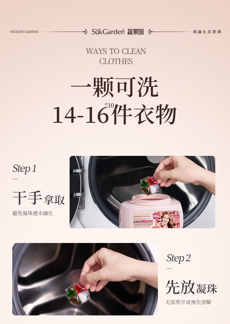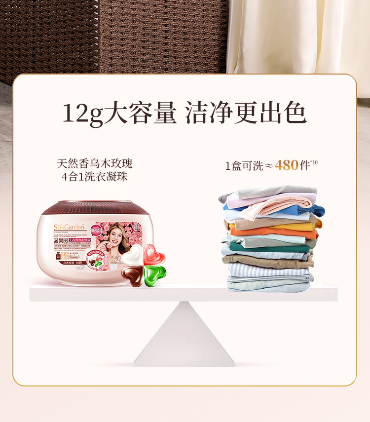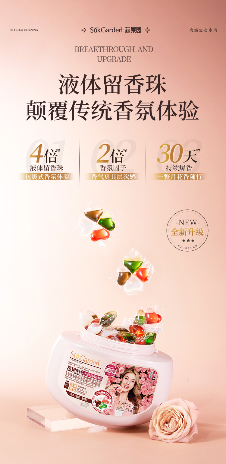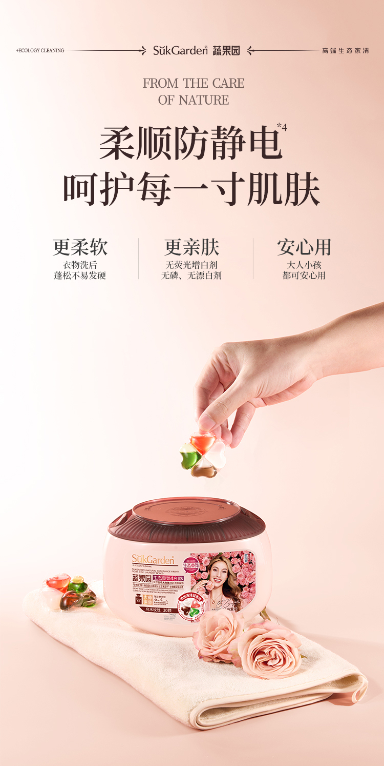 商品名称:SukGarden/蔬果园天然香乌木玫瑰4合1洗衣凝珠