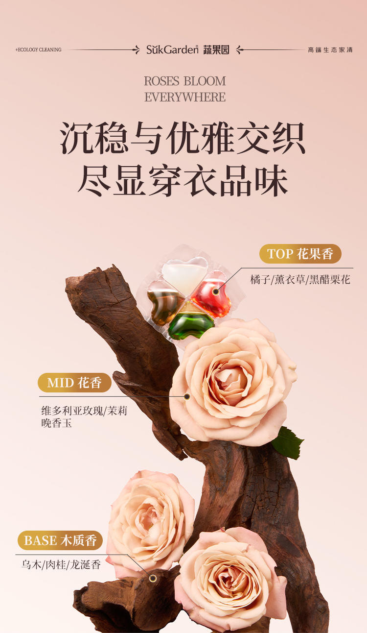 SukGarden/蔬果园天然香乌木玫瑰4合1洗衣凝珠