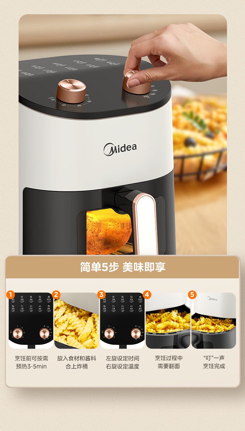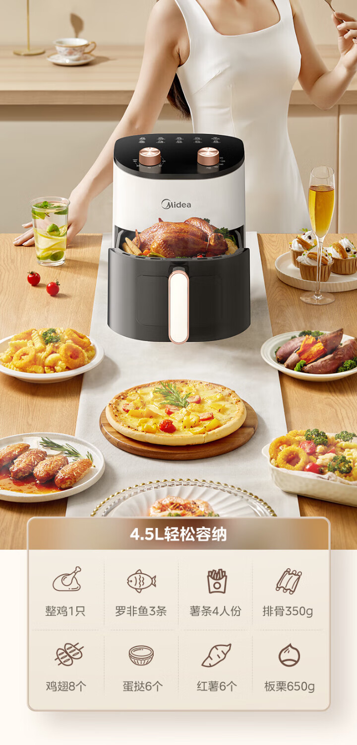 Midea/美的4.5升空气炸锅MF-KZE4588TQ