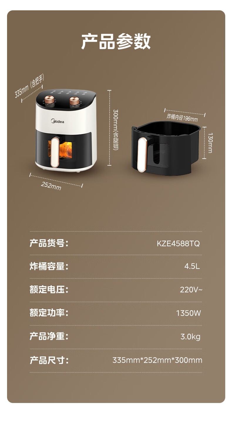商品名称:Midea/美的4.5升空气炸锅MF-KZE4588TQ