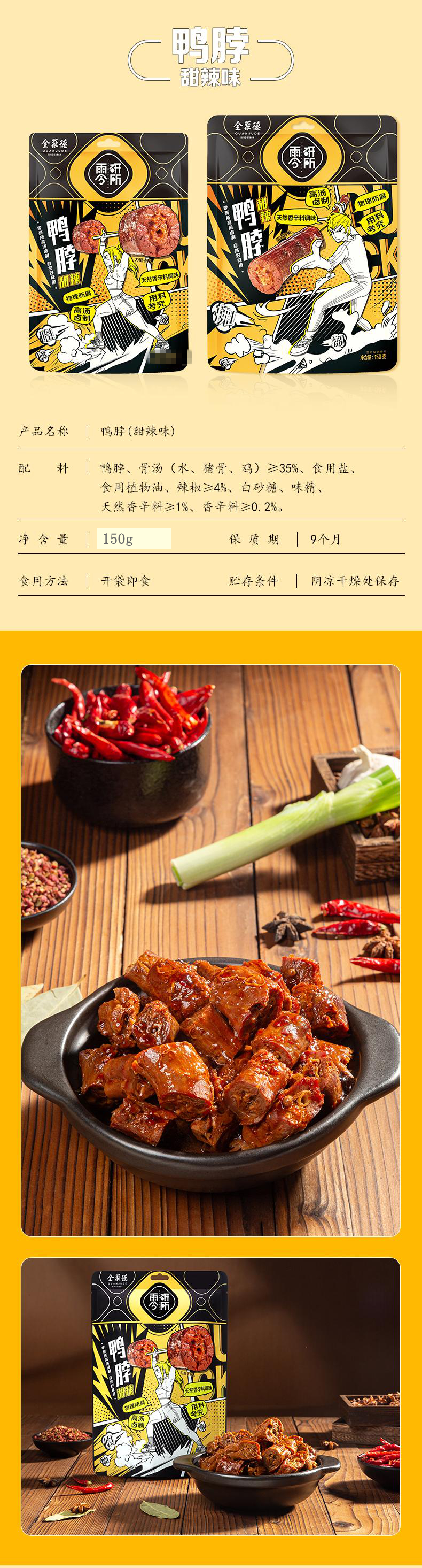 商品名称:全聚德零研所甜辣味鸭脖150g*3袋