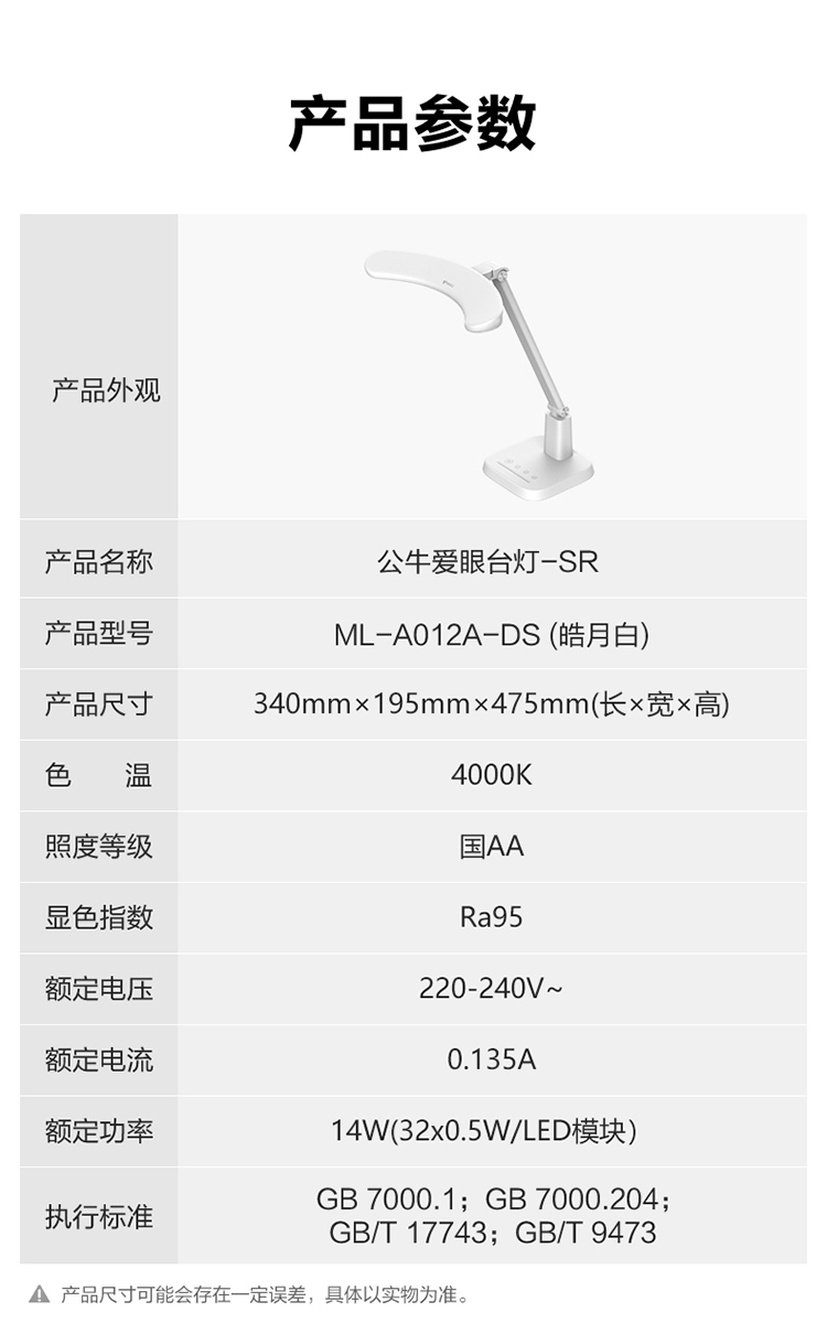 商品名称:BULL/公牛皓月白爱眼台灯-SR