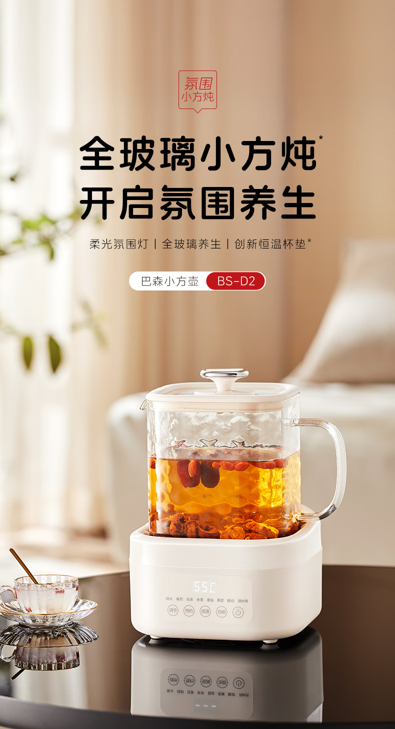 BASSENS/巴森小方炖全玻璃养生壶BS-D2MAX