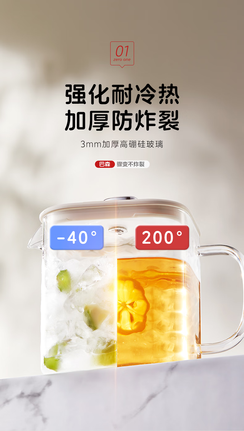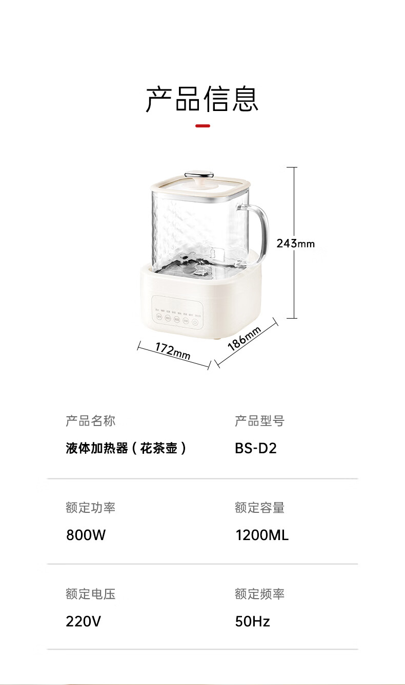 商品名称:BASSENS/巴森小方炖全玻璃养生壶BS-D2MAX