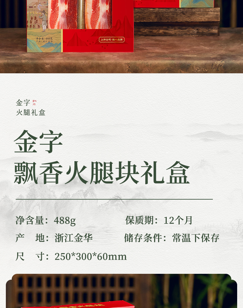 商品名称:金字飘香火腿块礼盒488g
