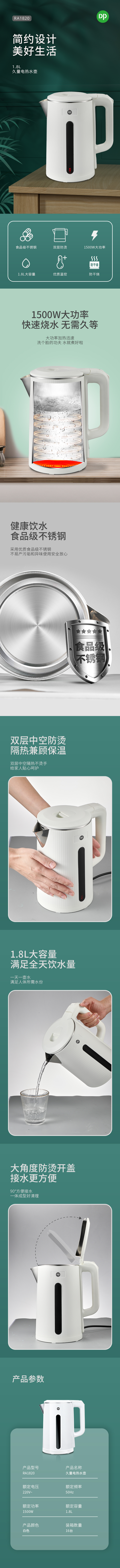 DP/久量1.8升电热水壶RA1820