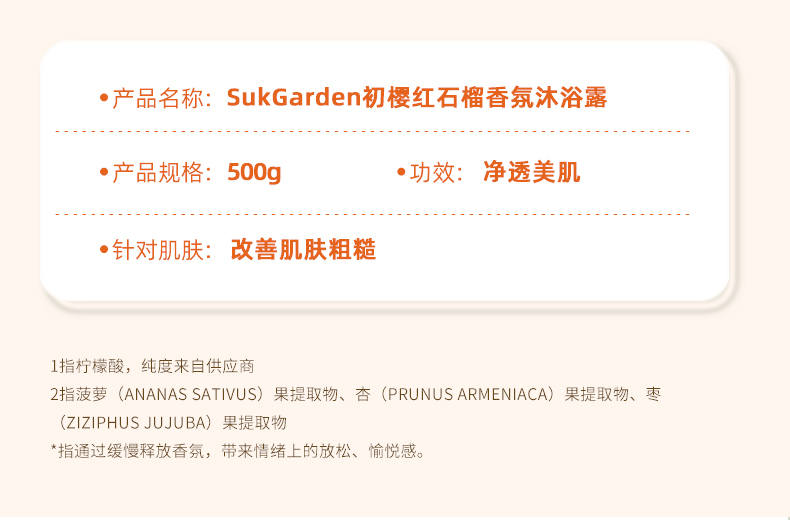 商品名称:SukGarden/蔬果园香氛沐浴露500g