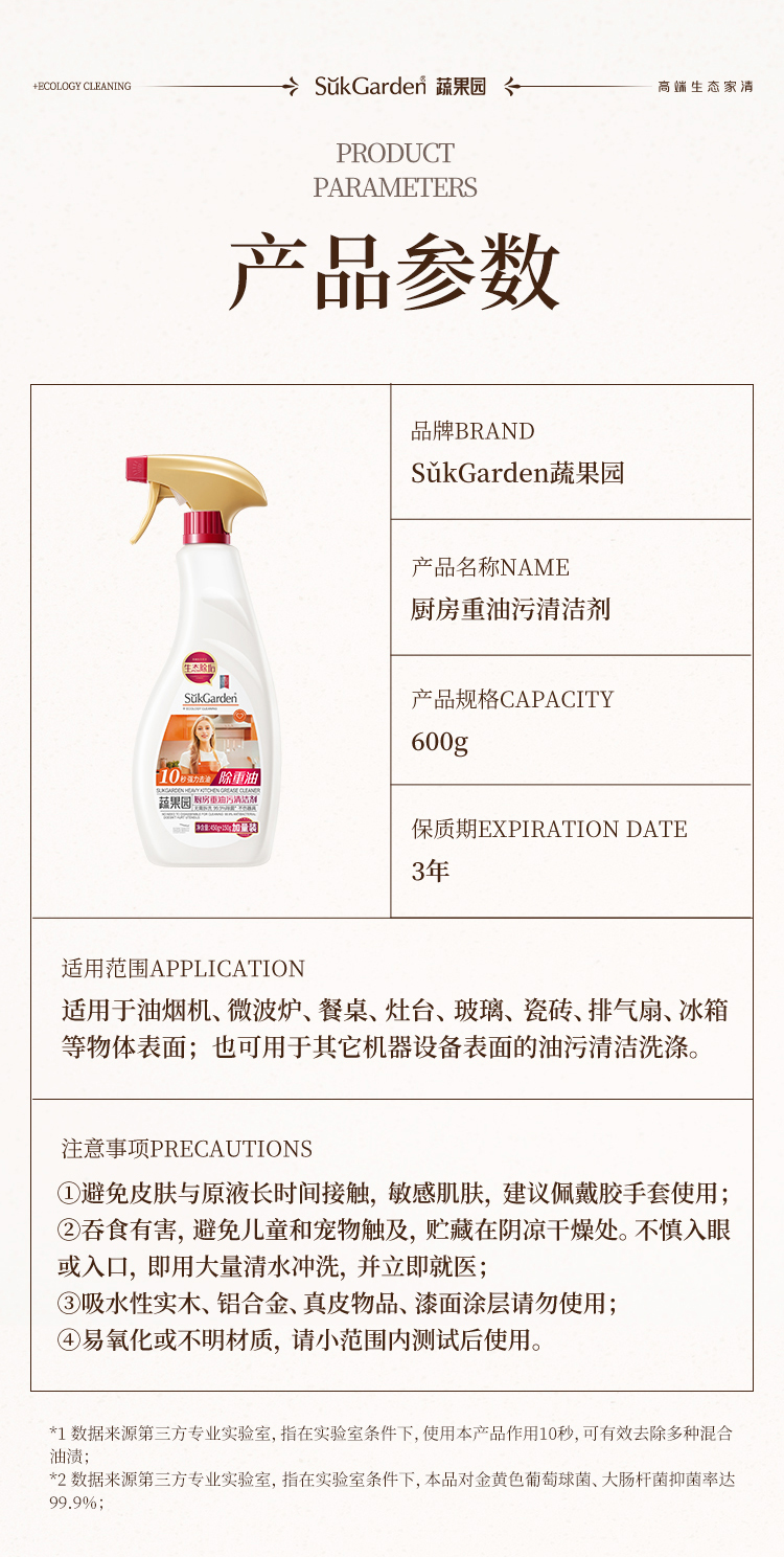 商品名称:SukGarden/蔬果园厨房重油污清洁剂600g